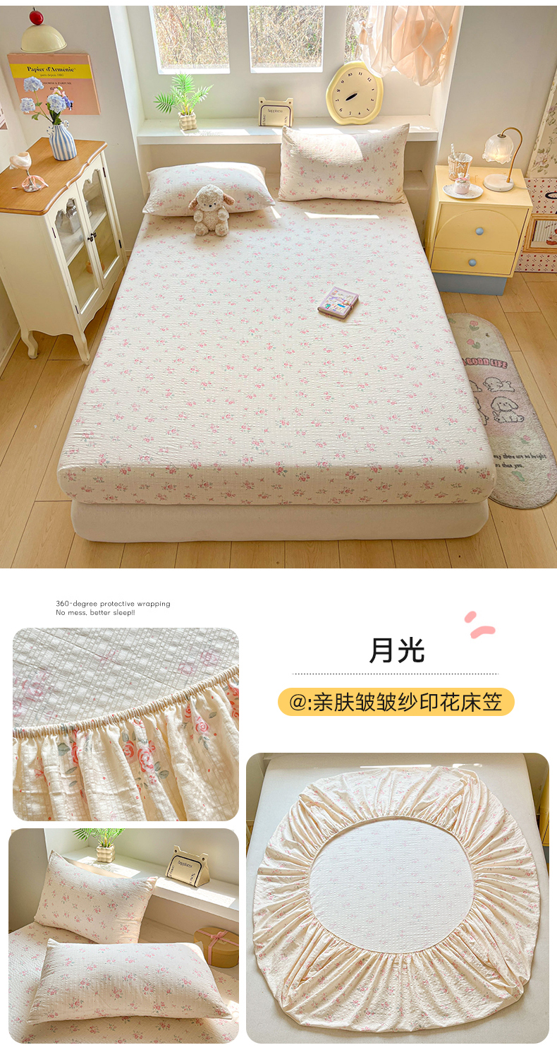 (总)蓝极人 2026新款泡泡纱印花床笠,CL星星人,CL草莓,CL初柠,CL春色,CL蝶迹,CL好心情,CL桔园,CL蘑菇兔,CL南洋,CL苹果狗,CL浅夏,CL情人节咖,CL曲奇猫,CL若梦,CL生日狗,CL施华洛黄,CL胭脂,CL耶耶狗,CL月光