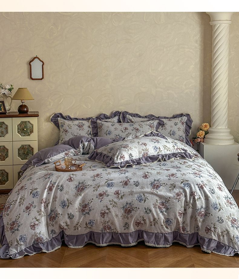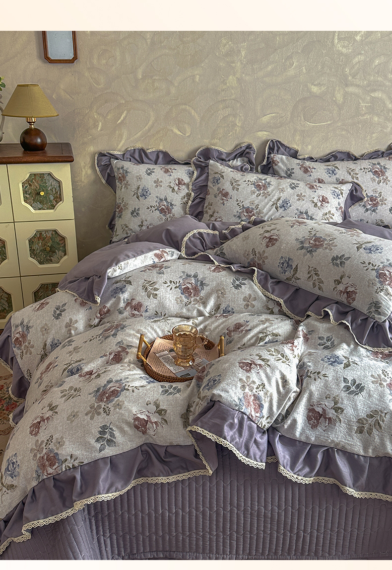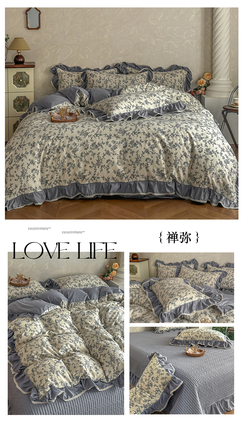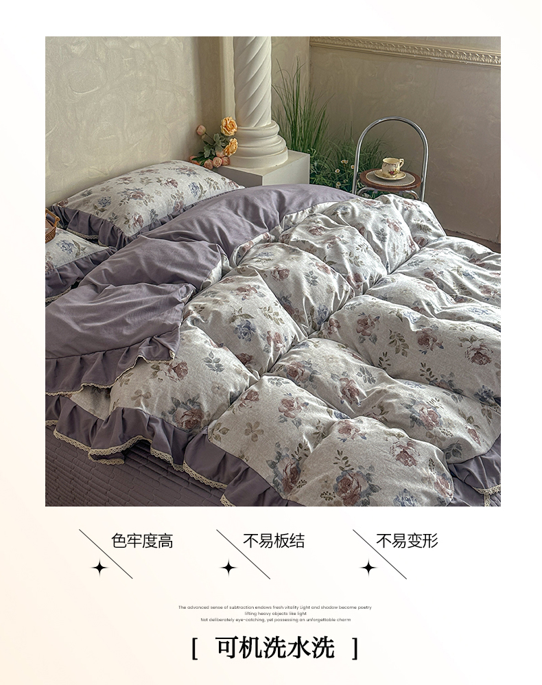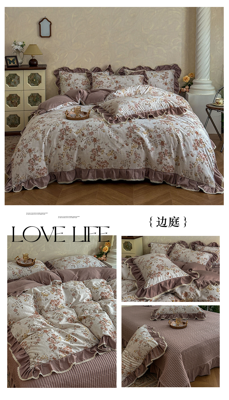 (总)星光耀 2026春夏新品加厚皱皱纱床盖四件套系列,娇艳百合,波西米亚,繁华似锦,粉紫玫瑰,格调,花季,花素,皇冠,灰咖小格,少女蝴蝶结,小美好-灰,小美好-咖