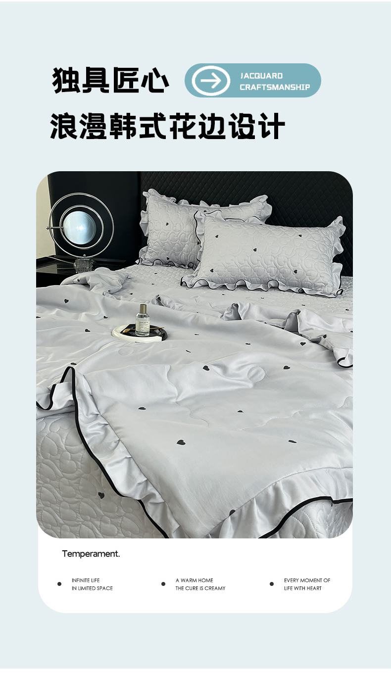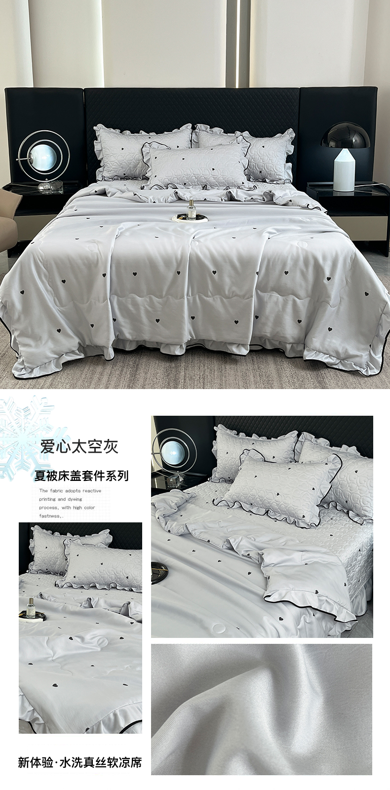 星光耀 2026新款水洗真丝夏被床盖四件套 爱心太空灰