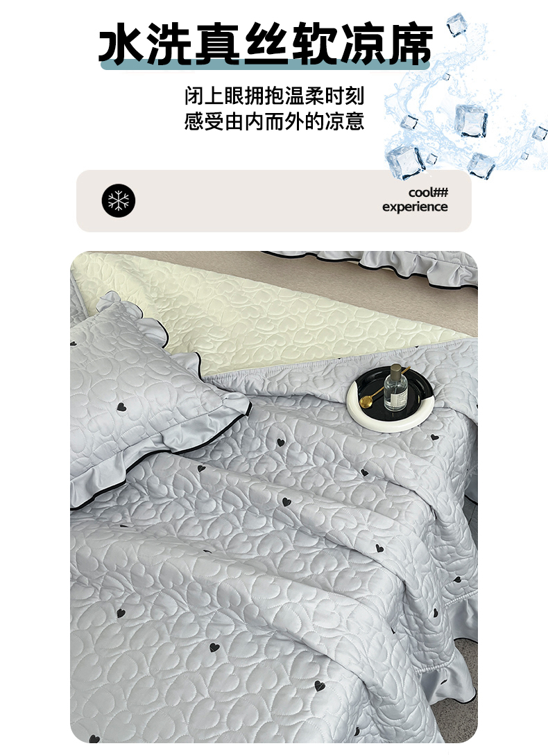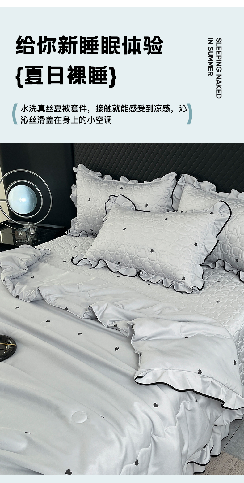 商品名称:星光耀 2026新款水洗真丝夏被床盖四件套 爱心太空灰