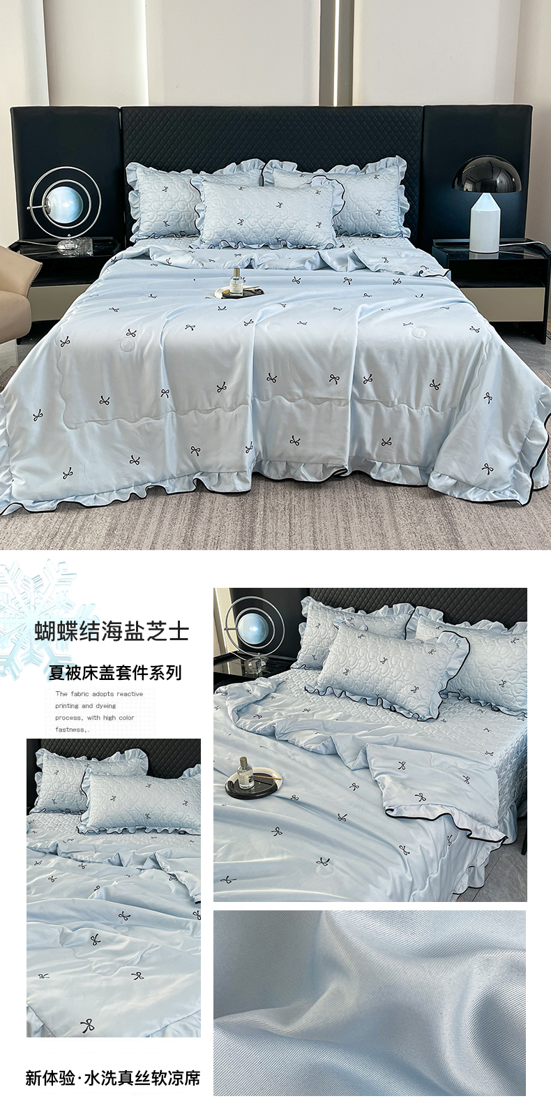 (总)星光耀 2026新款水洗真丝夏被床盖四件套,爱心太空灰,爱心甜桃粉,蝴蝶结海盐蓝,蝴蝶结芝士米,玫瑰甜桃粉,玫瑰芝士米