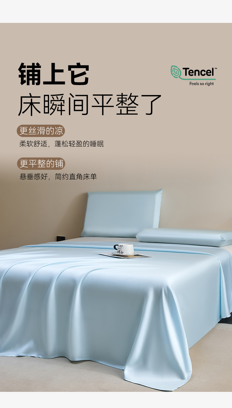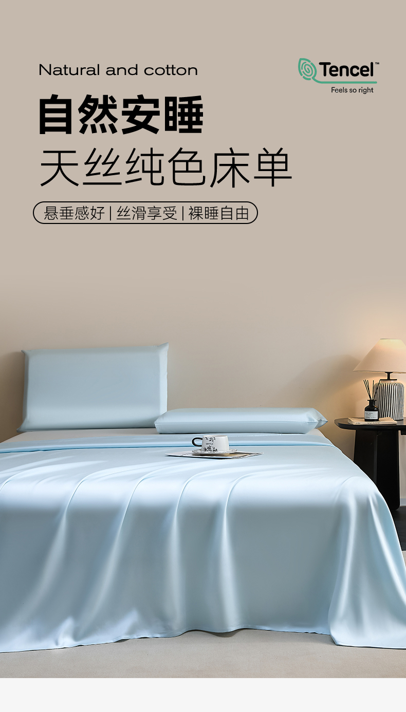 商品名称:DC 2026新款莱赛尔天丝纯色单品床单 淡海蓝
