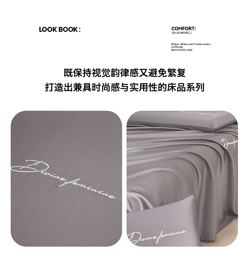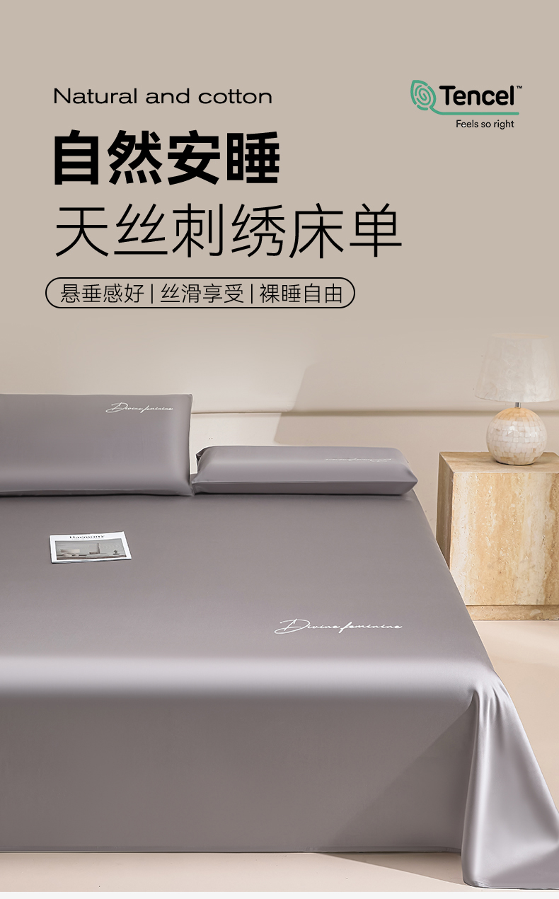 商品名称:DC 2026新款莱赛尔天丝轻奢刺绣单品床单 经典灰