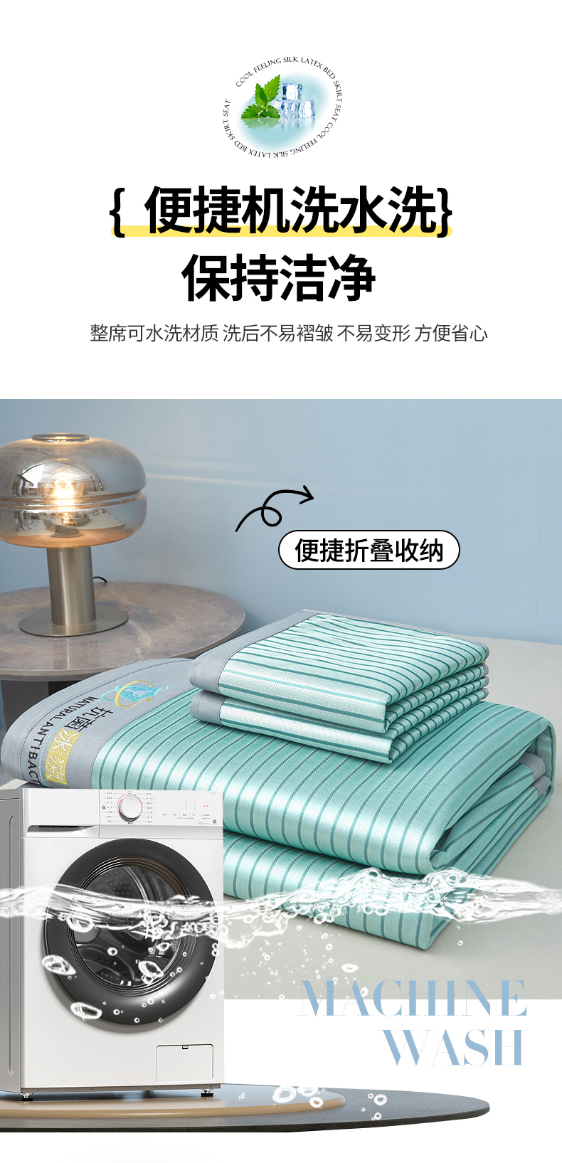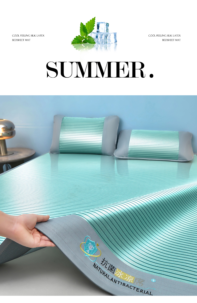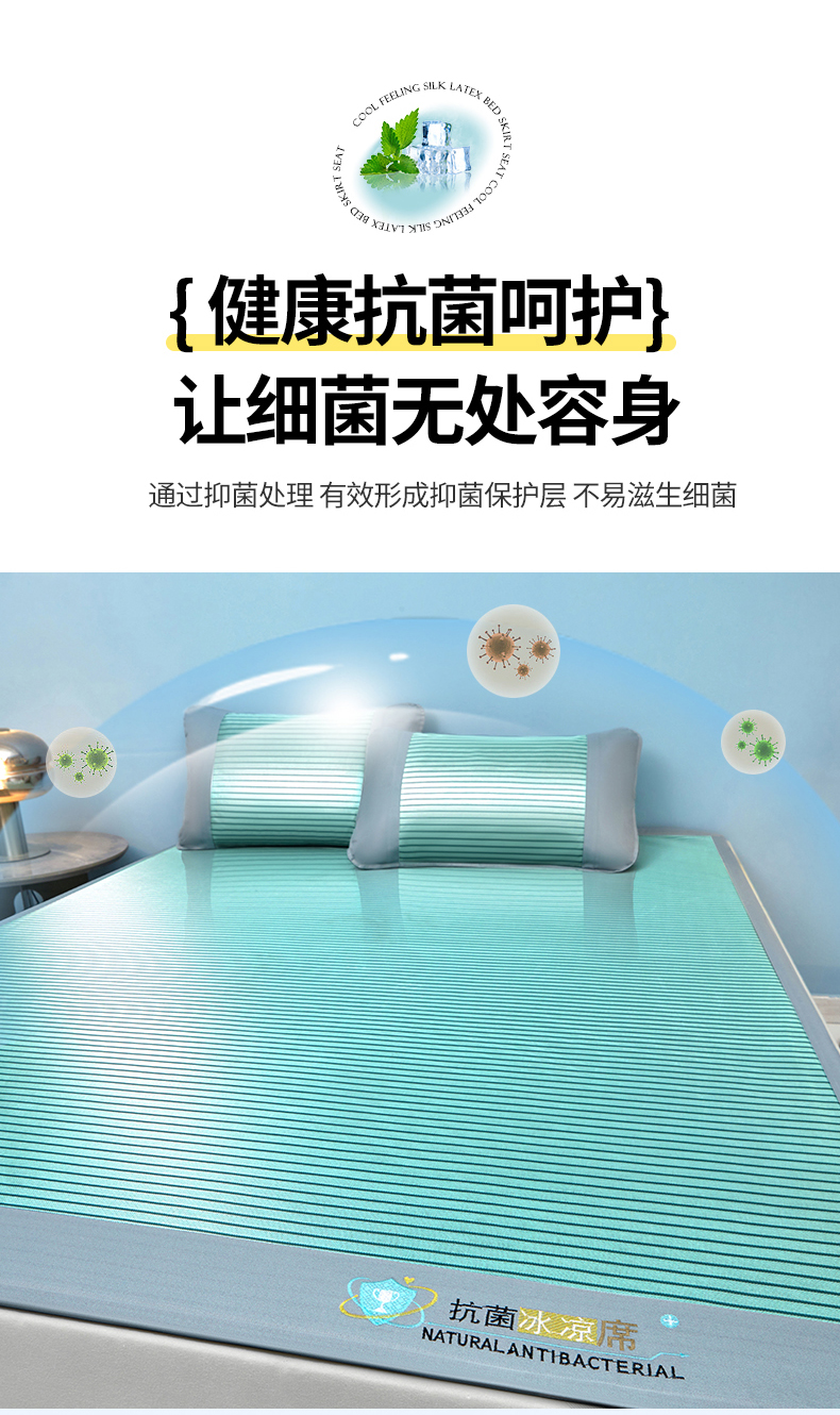 航途席业 2026新款抗菌冰凉席饼干条纹无纺布凉席席子 素夏 薄荷绿