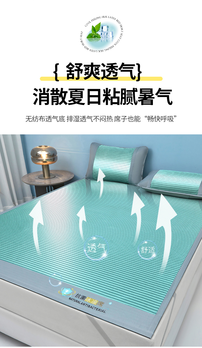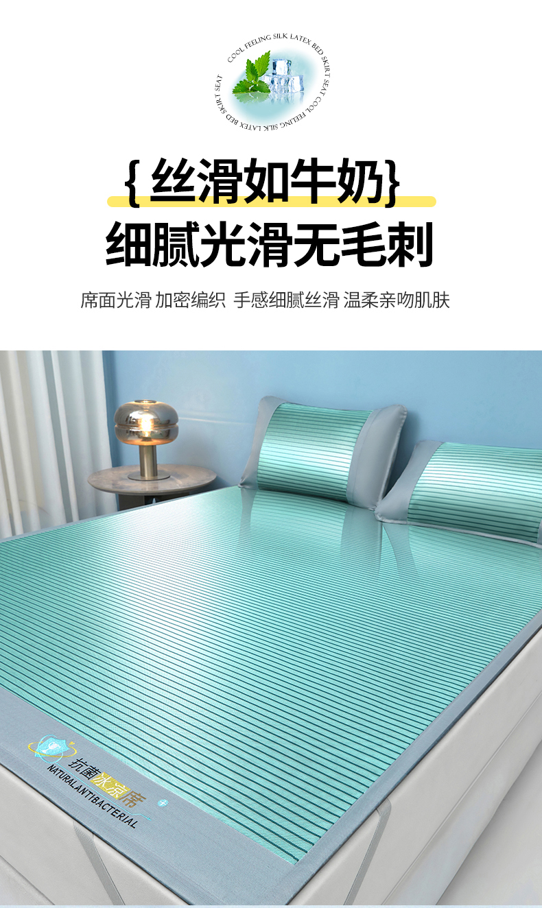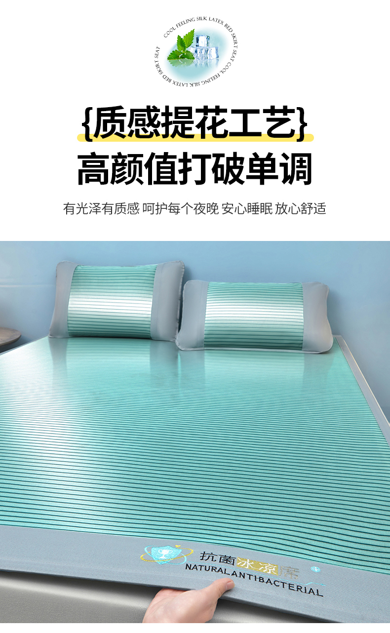 • 91家纺网 家纺一手货源 找家纺 航途席业 2026新款抗菌冰凉席饼干条纹无纺布凉席席子 素夏 薄荷绿