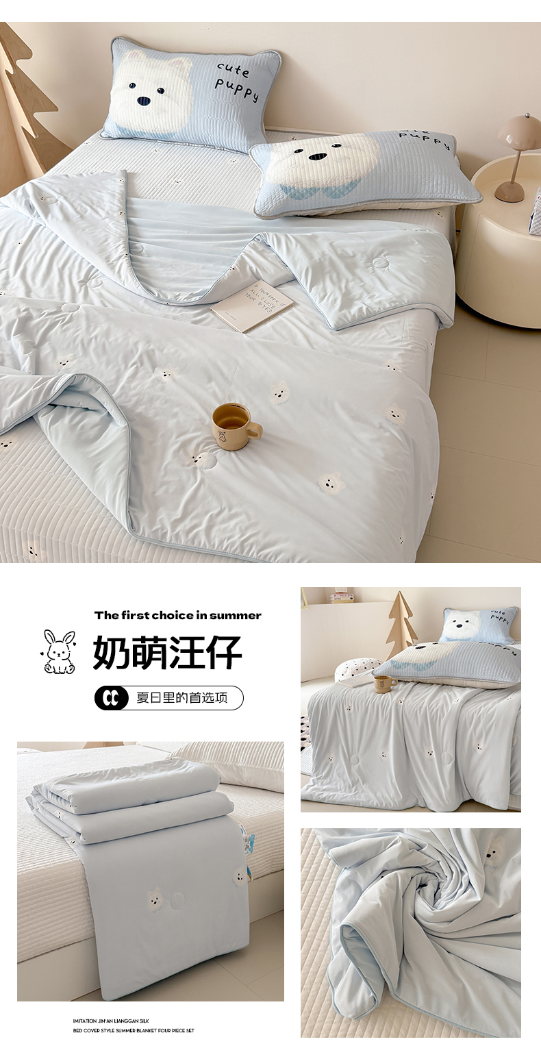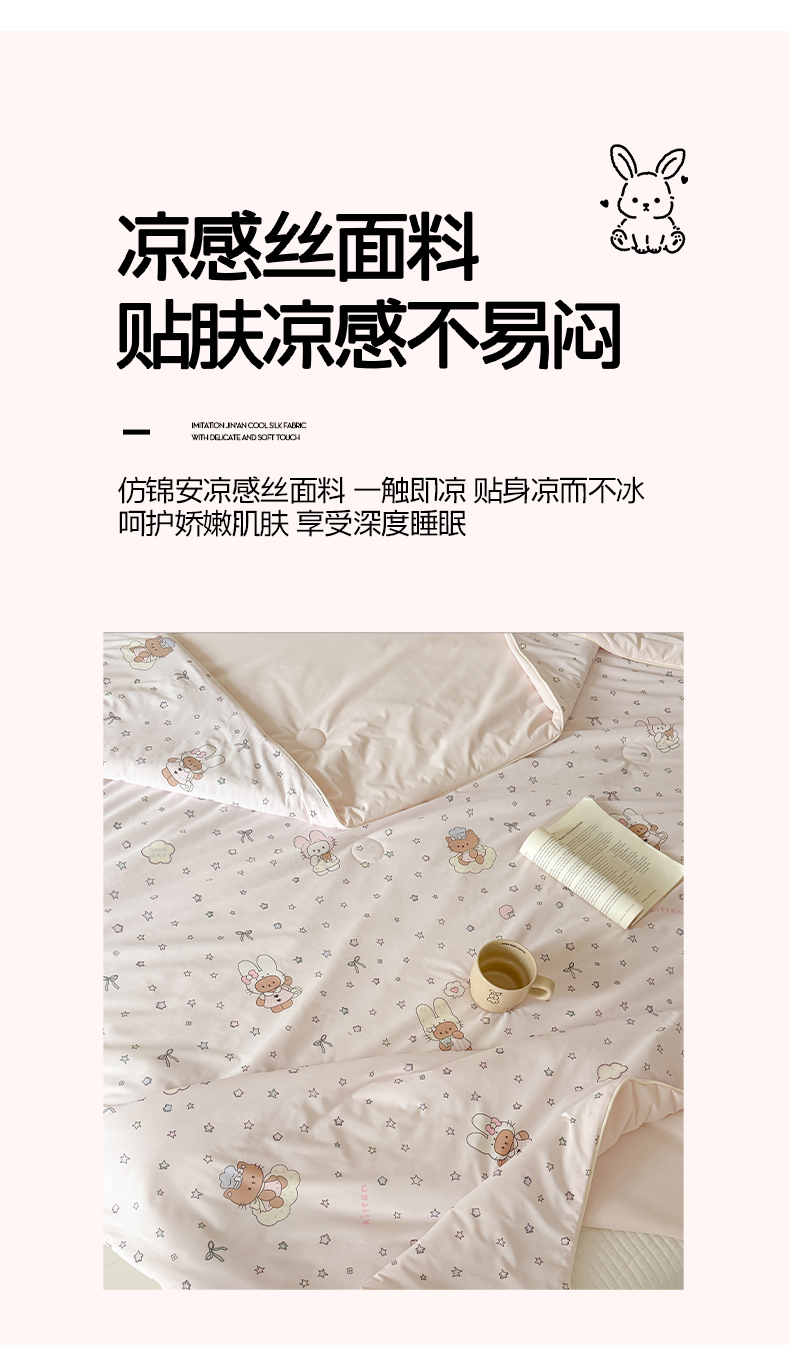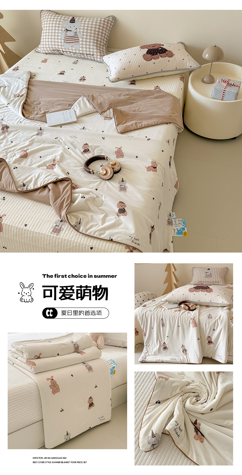 商品名称:吾欢心 2026夏季新款仿锦安凉感丝床盖款夏被四件套可可机洗凉感值大于0.2 可爱萌物
