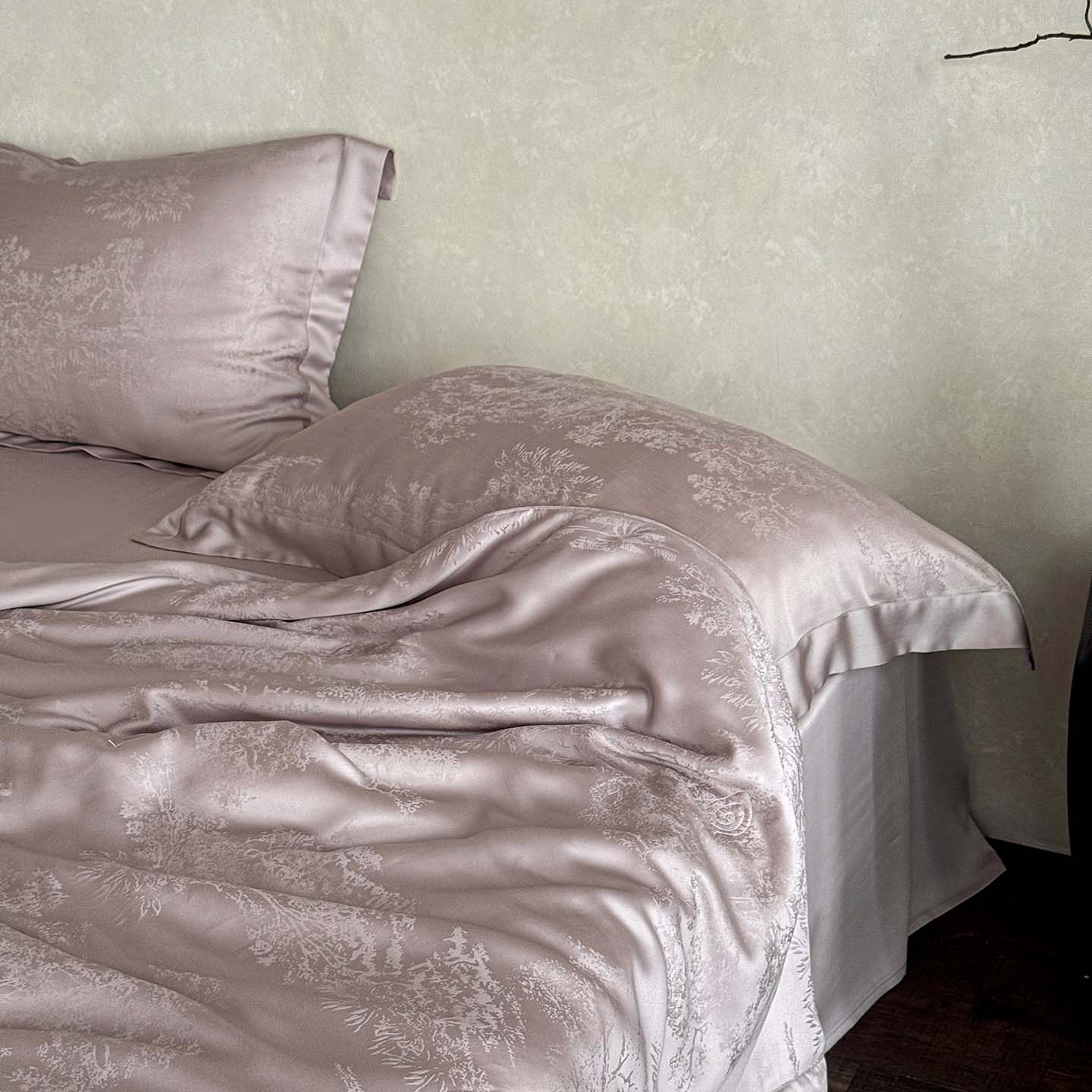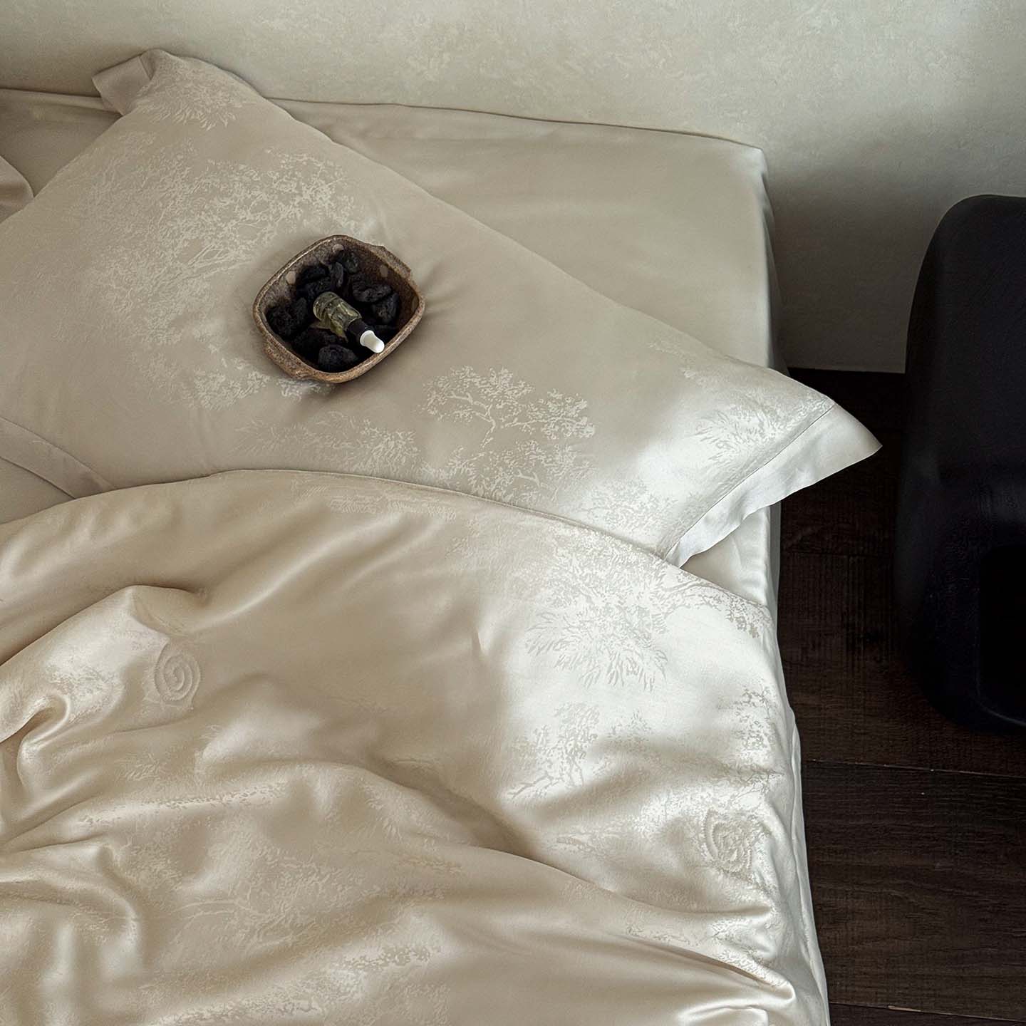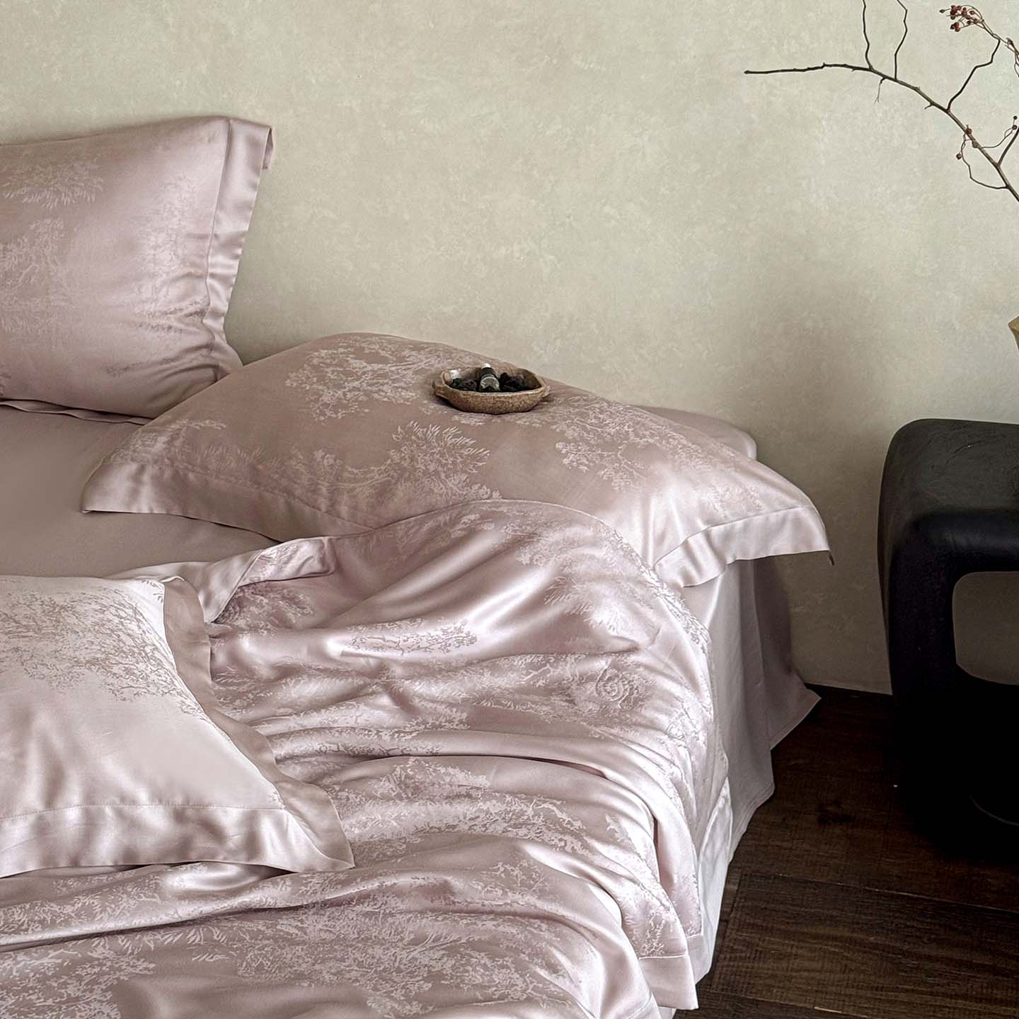 • 91家纺网 家纺一手货源 找家纺 (总)花时间 2026春夏新款60s兰精天丝染色提花四件套,柒予-春绿,悠野-香槟
