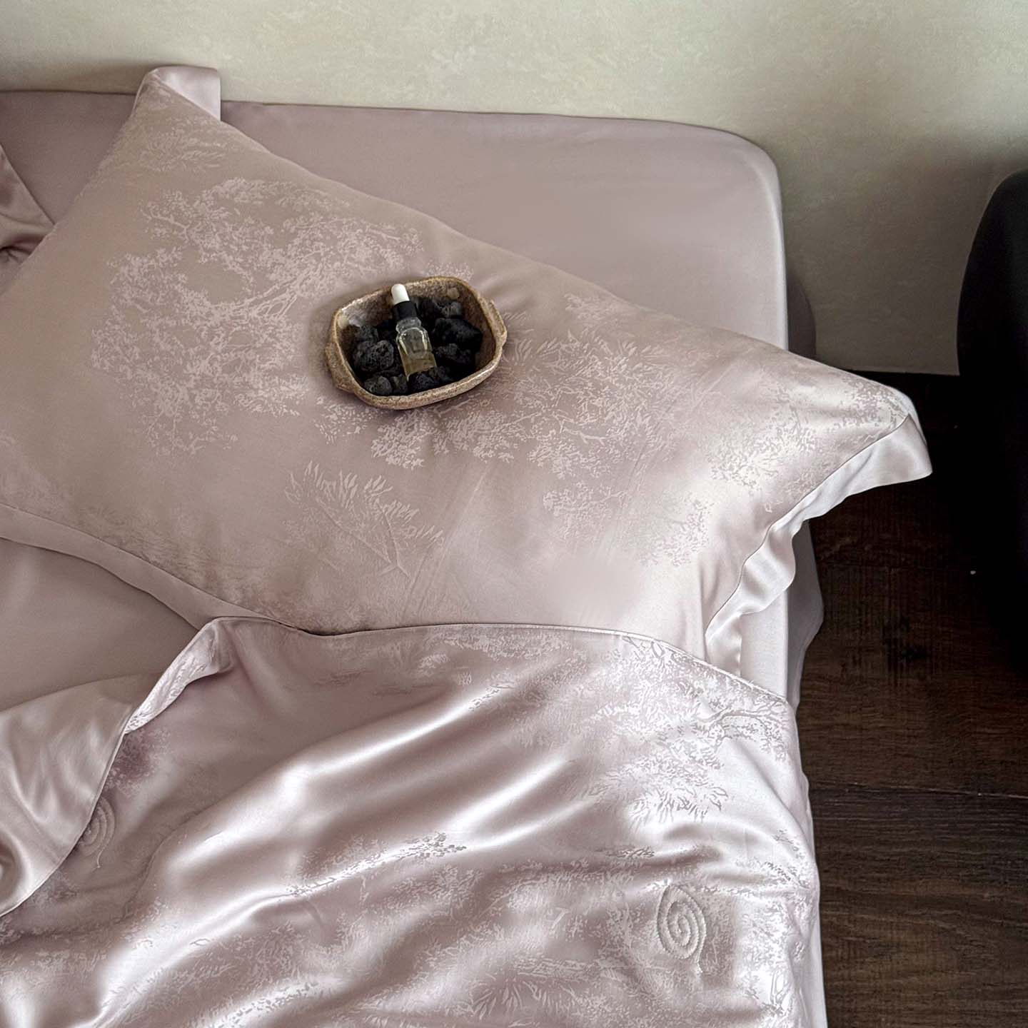 (总)花时间 2026春夏新款60s兰精天丝染色提花四件套,柒予-春绿,悠野-香槟