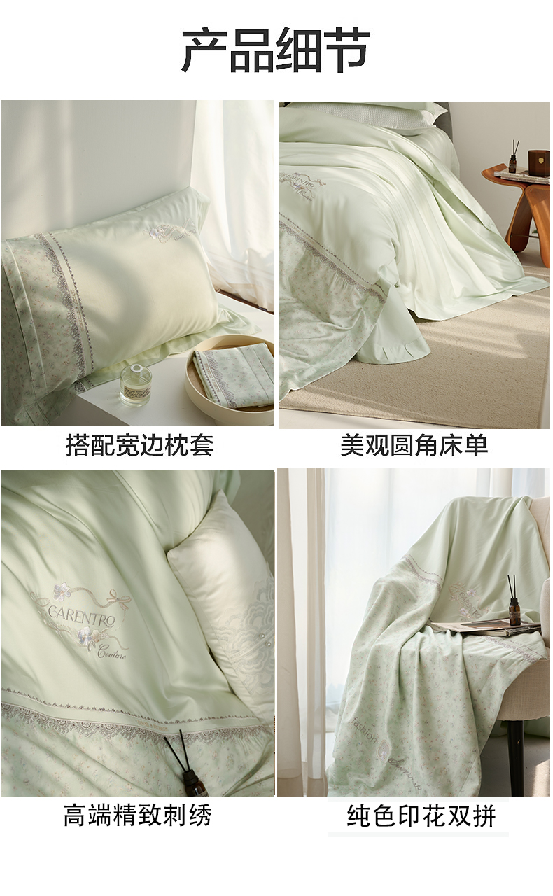 (总)诗黛尔 2026春夏新款 天丝刺绣四件套叶叶生辉系列,清新绿,绅士灰,水晶兰,香槟金,香妃玉,优雅紫