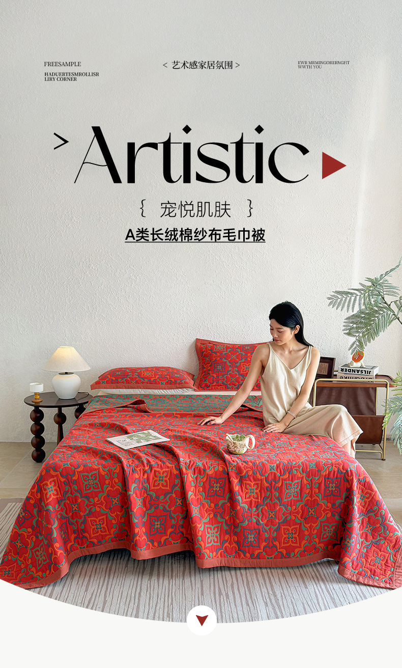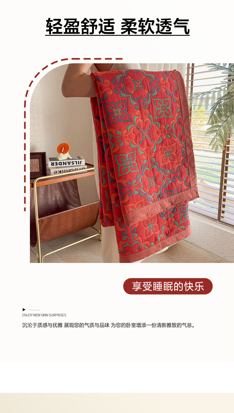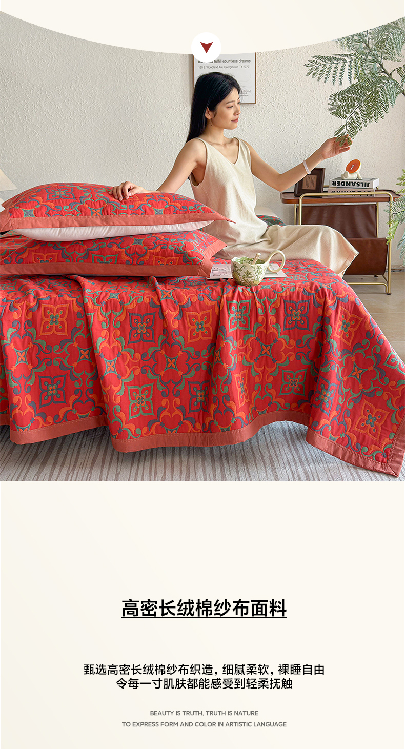 • 91家纺网 家纺一手货源 找家纺 棠薇家纺 2026新款纱布盖毯长绒棉纱布毛巾被夏被单双人棉纱盖毯毛巾毯夏季夏凉被空调被毯子可铺可盖床盖 年华红
