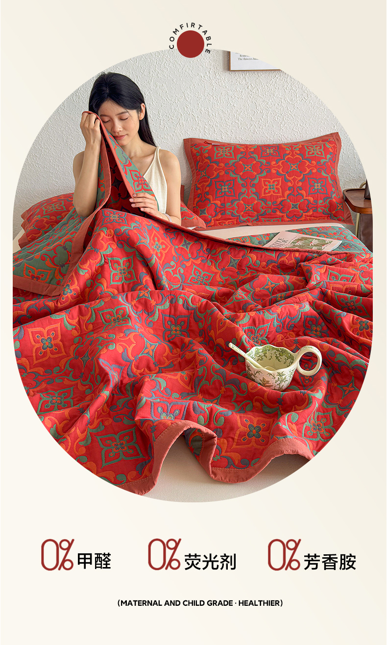 当前位置: 91家纺网 > 商品网购 > 被子 > 夏被 > 棠薇家纺 2026新款纱布盖毯长绒棉纱布毛巾被夏被单双人棉纱盖毯毛巾毯夏季夏凉被空调被毯子可铺可盖床盖 年华红