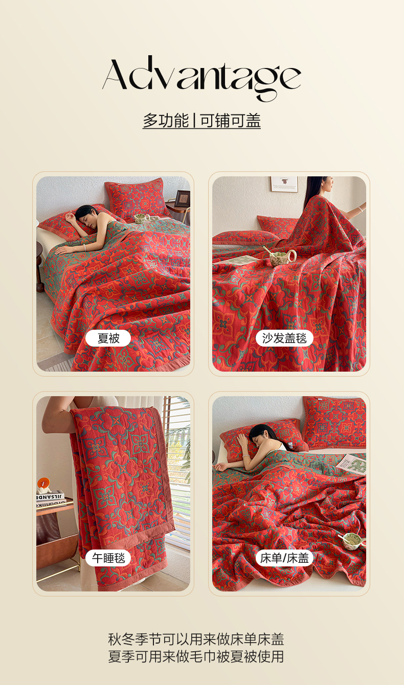 • 91家纺网 家纺一手货源 找家纺 棠薇家纺 2026新款纱布盖毯长绒棉纱布毛巾被夏被单双人棉纱盖毯毛巾毯夏季夏凉被空调被毯子可铺可盖床盖 年华红 91家纺网 家纺一手货源 找家纺 棠薇家纺 2026新款纱布盖毯长绒棉纱布毛巾被夏被单双人棉纱盖毯毛巾毯夏季夏凉被空调被毯子可铺可盖床盖 年华红