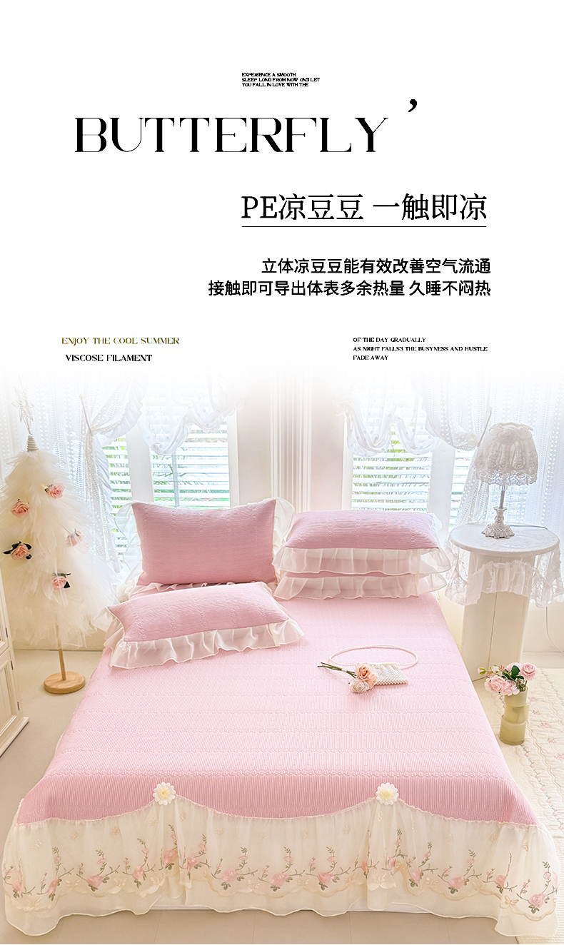 商品名称:(总)苏米娜家纺SUMINA 2026新款PE高分子弯边工艺床裙款凉席三件套-可心
