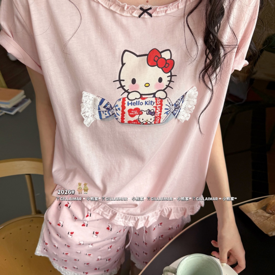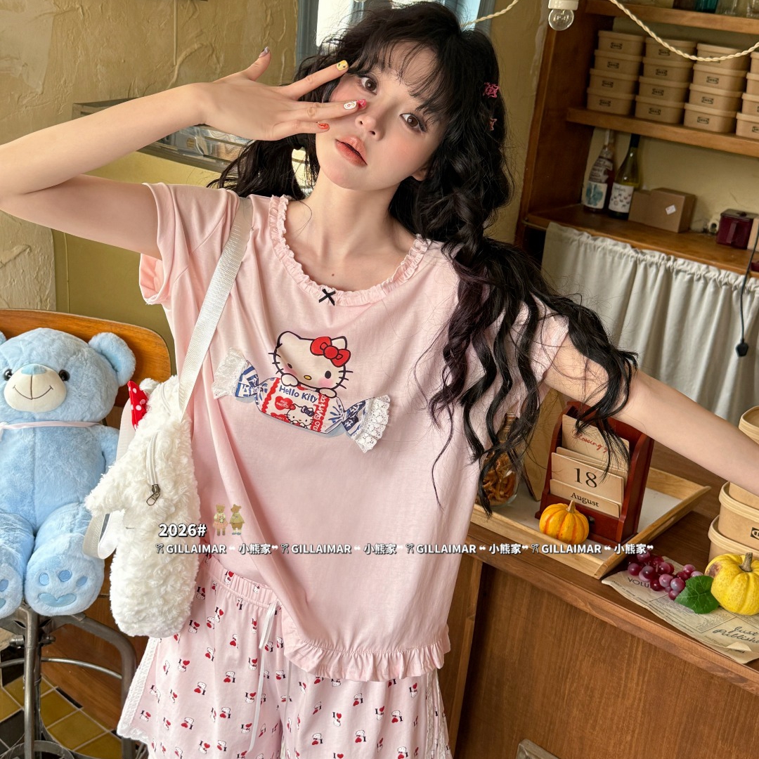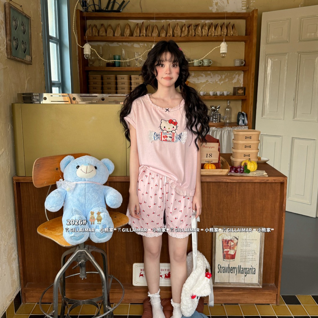 当前位置: 91家纺网 > 商品网购 > 居家日用 > 睡衣/家居服套装 > (总)妍景家居生活馆 2026新款莱赛尔冰丝棉睡衣短裤两件套奶糖KT