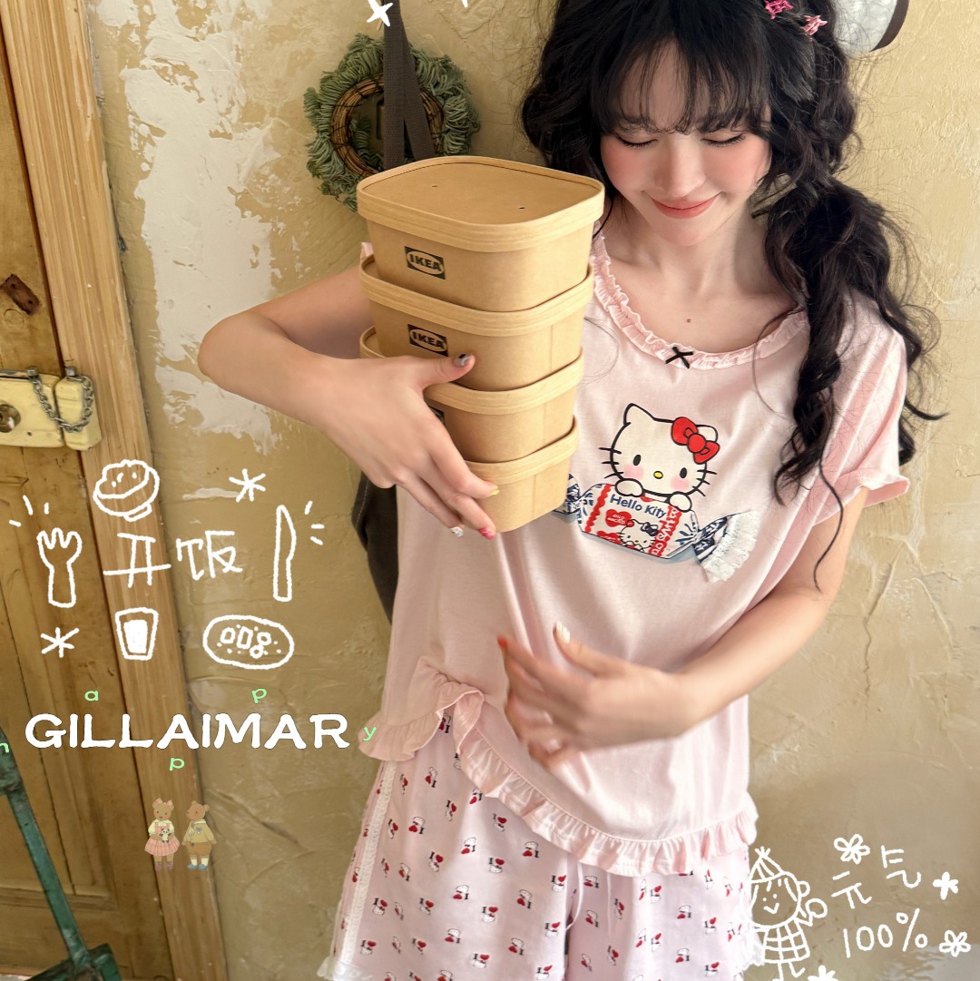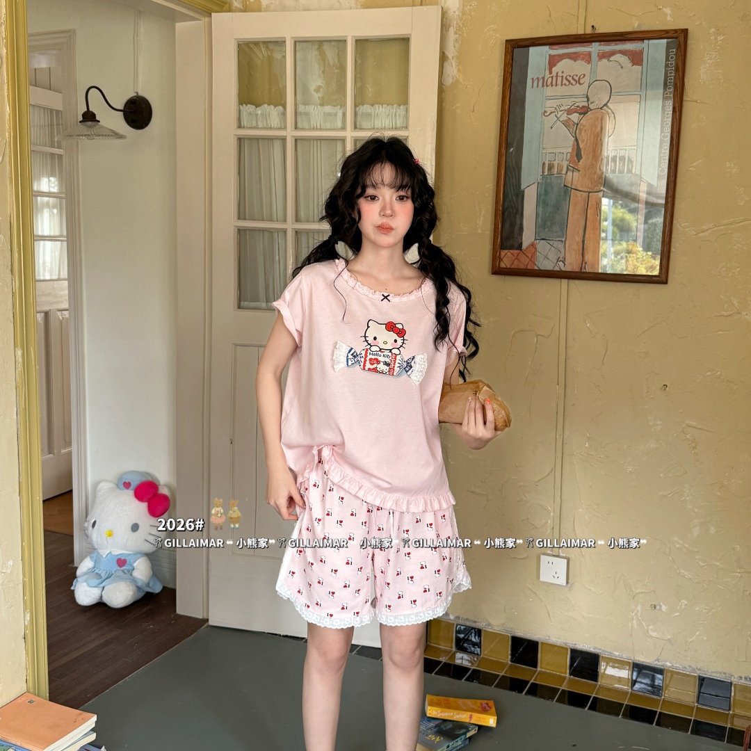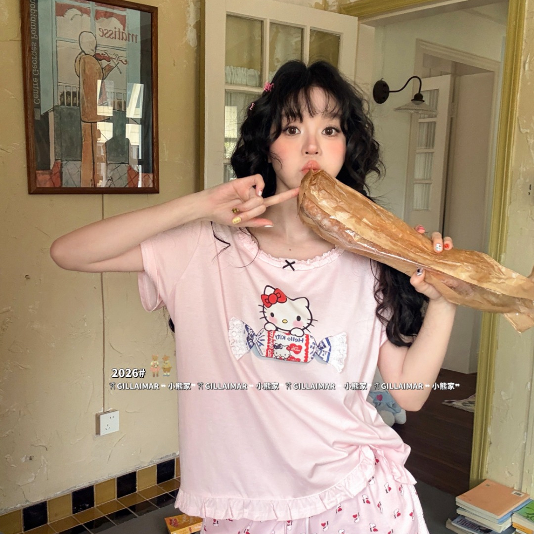 当前位置: 91家纺网 > 商品网购 > 居家日用 > 睡衣/家居服套装 > (总)妍景家居生活馆 2026新款莱赛尔冰丝棉睡衣短裤两件套奶糖KT
