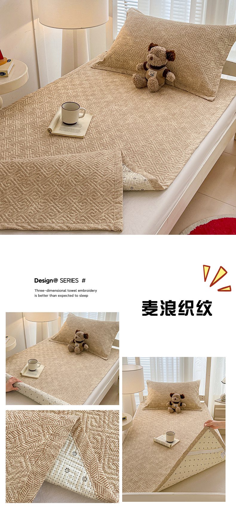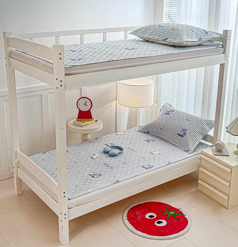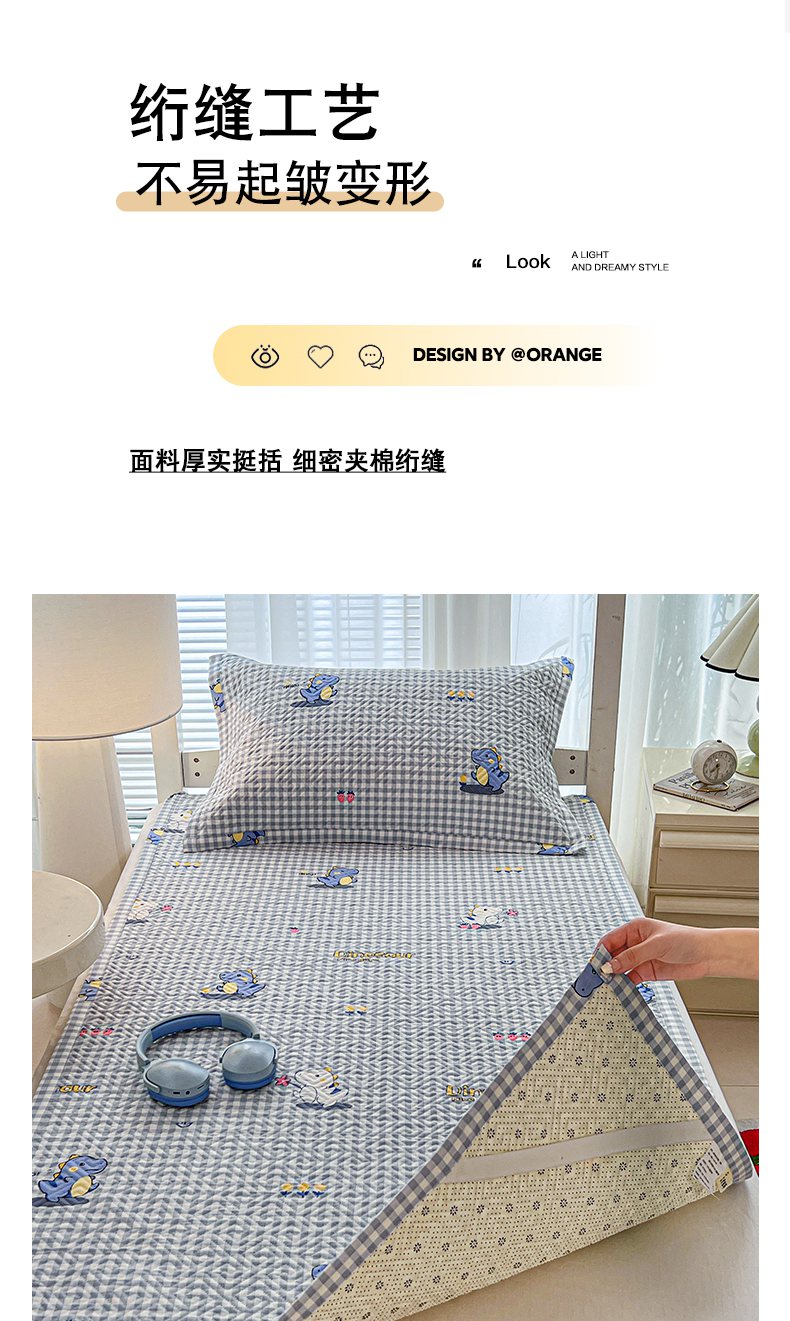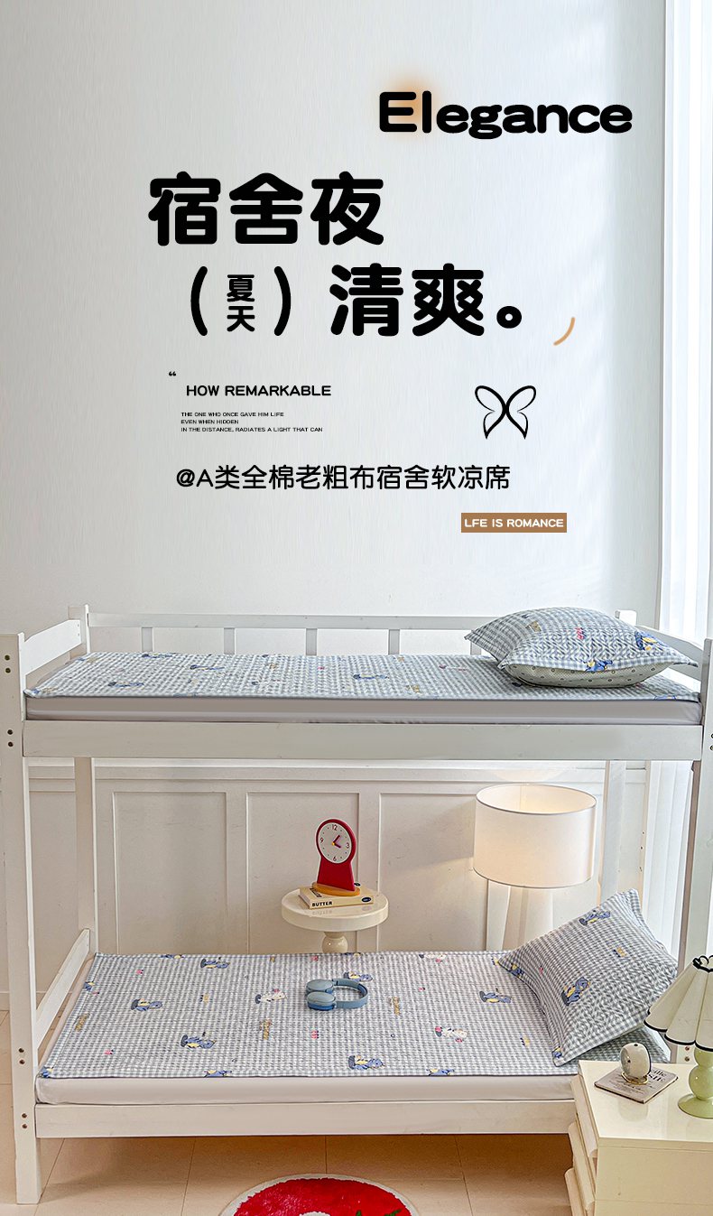 (总)忆生活家纺 2026新款学生床全棉老粗布软凉席老粗布夹棉床盖上下铺,蓝格龙宝,条纹绿,花漾小兔,麦浪织纹,海草,藤蔓兔,豹纹,彩色波点,小爱心,鸭鸭春游,叶语,枝繁叶茂,组合图