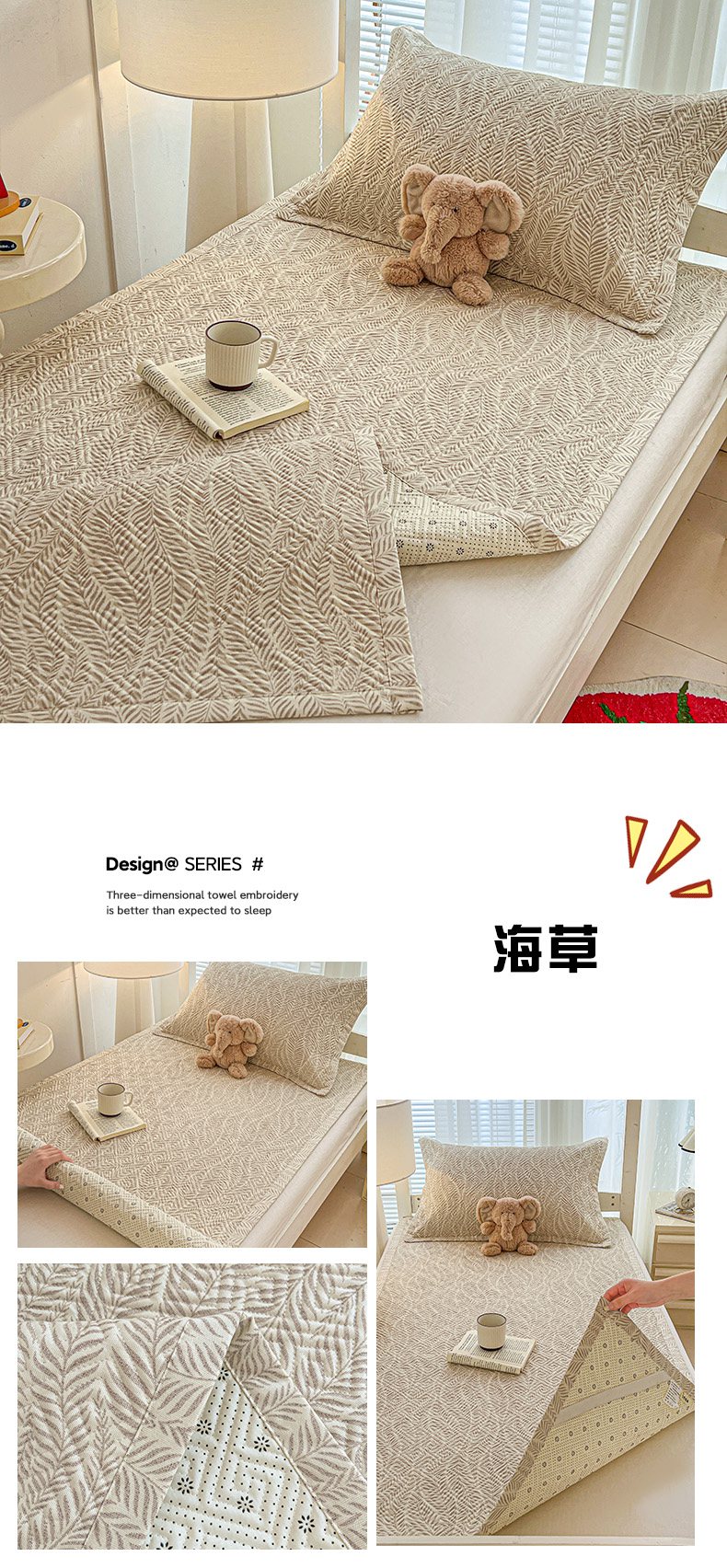 (总)忆生活家纺 2026新款A类全棉老粗布软凉席夹棉床盖可机洗,彩色波点,豹纹,海草,花漾小兔,蓝格龙宝,麦浪织纹,藤蔓兔,条纹绿,小爱心,鸭鸭春游,叶语,枝繁叶茂,组合图