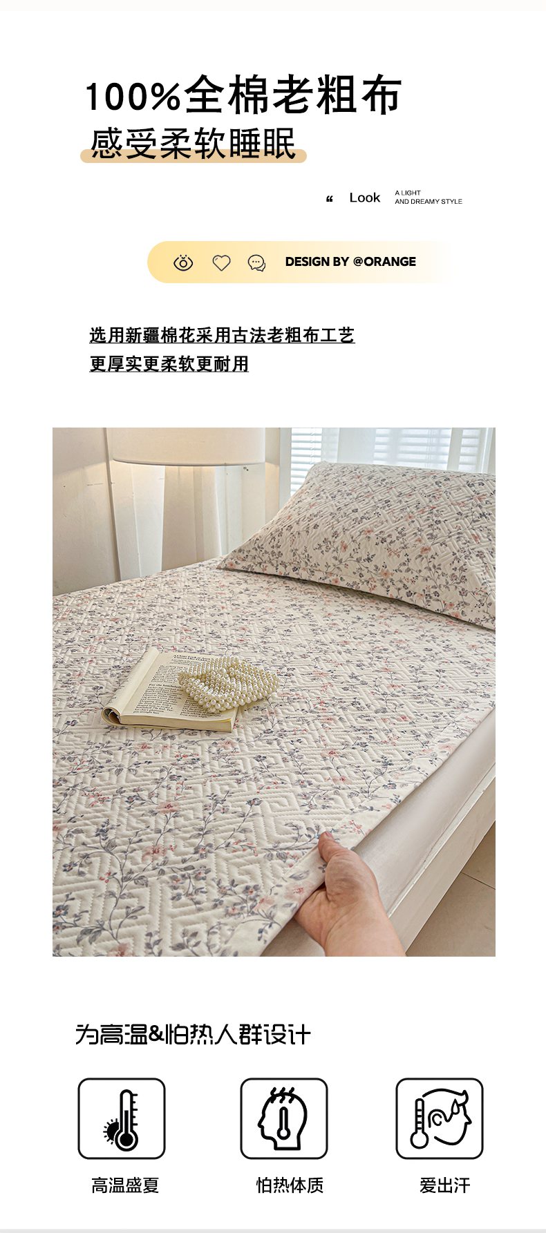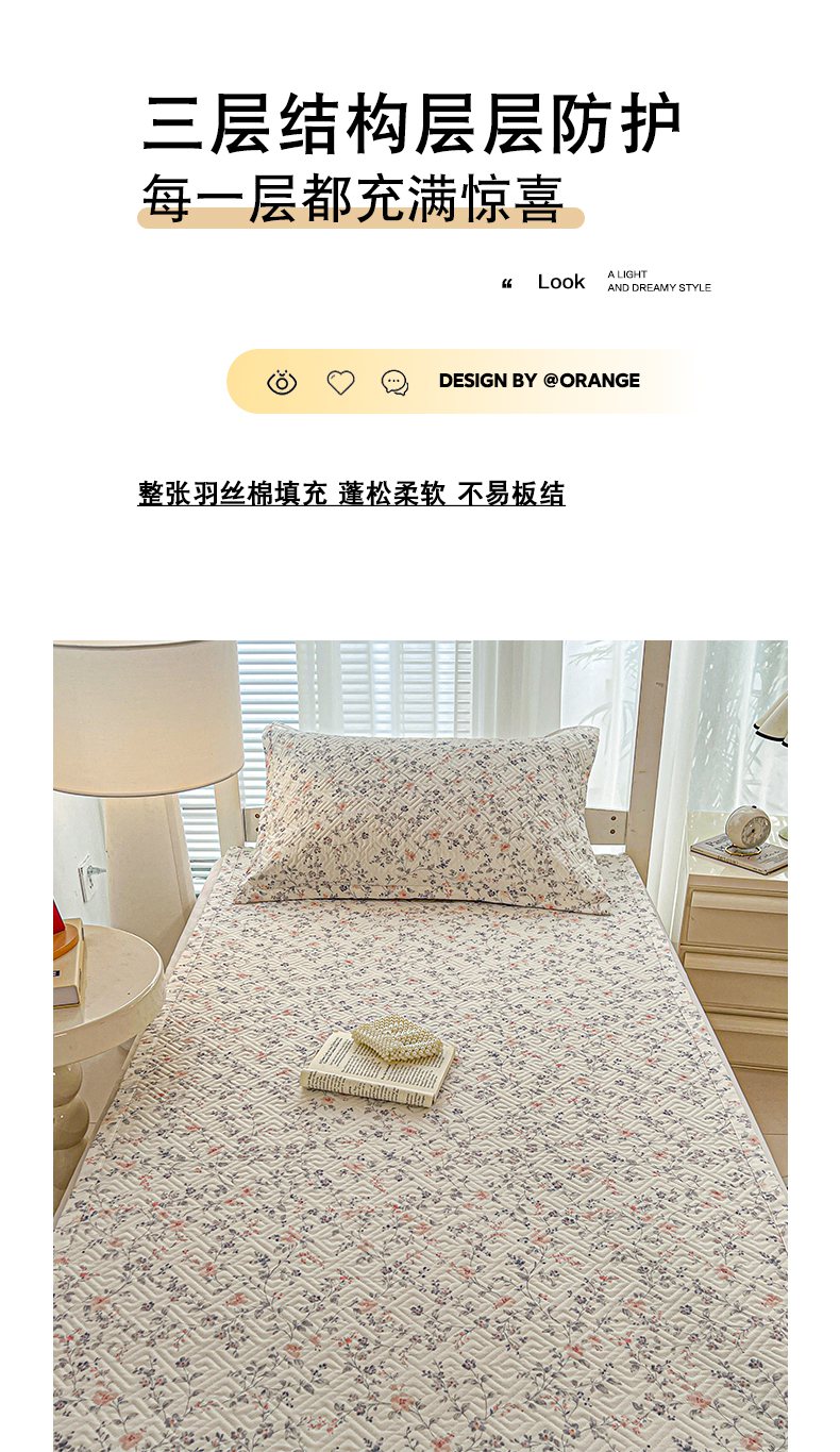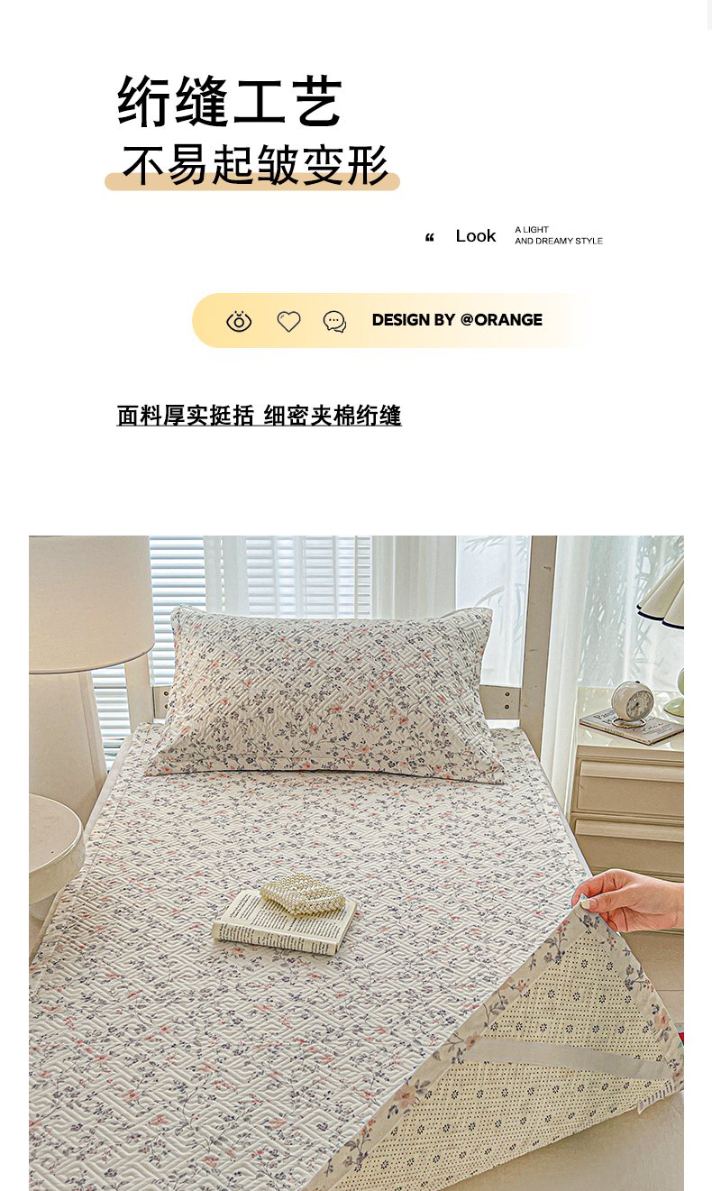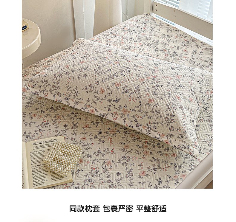 • 91家纺网 家纺一手货源 找家纺 忆生活家纺 2026新款学生床全棉老粗布软凉席夹棉床盖 叶语