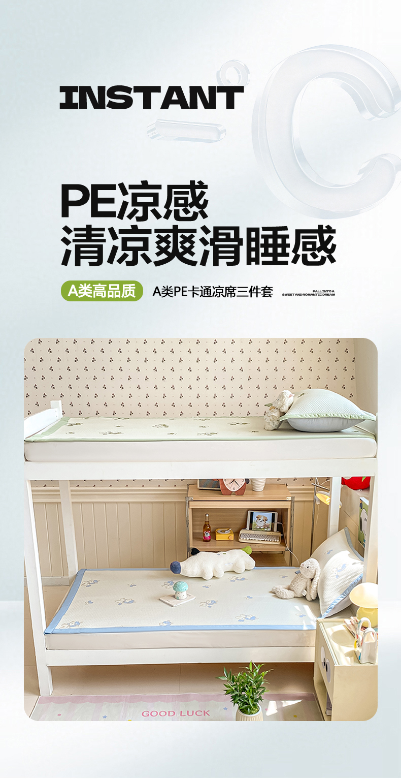 (总)源舍家纺 2026新款A类PE卡通凉席三件套