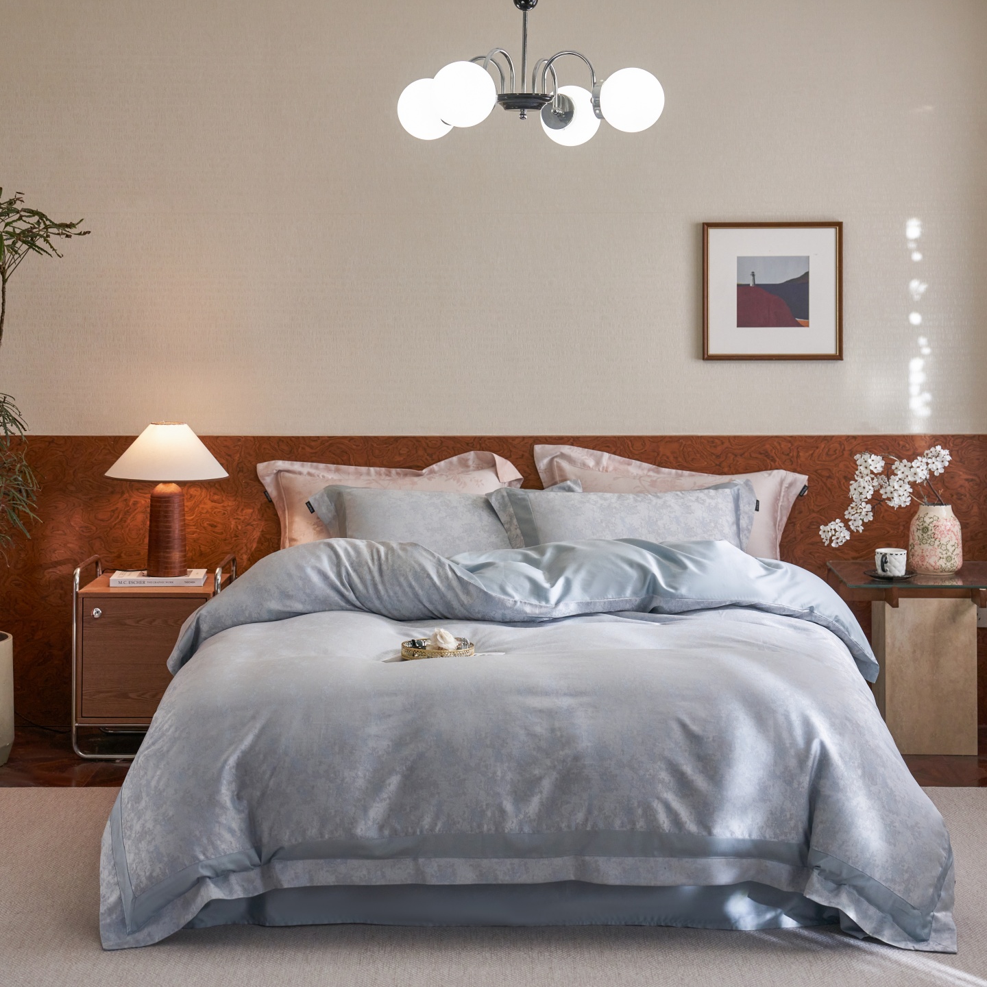 (总)安莱生活 2026年新款菊花纱缎染全棉提花云染织梦四件套,云染织梦-淡蓝,云染织梦-嫩粉