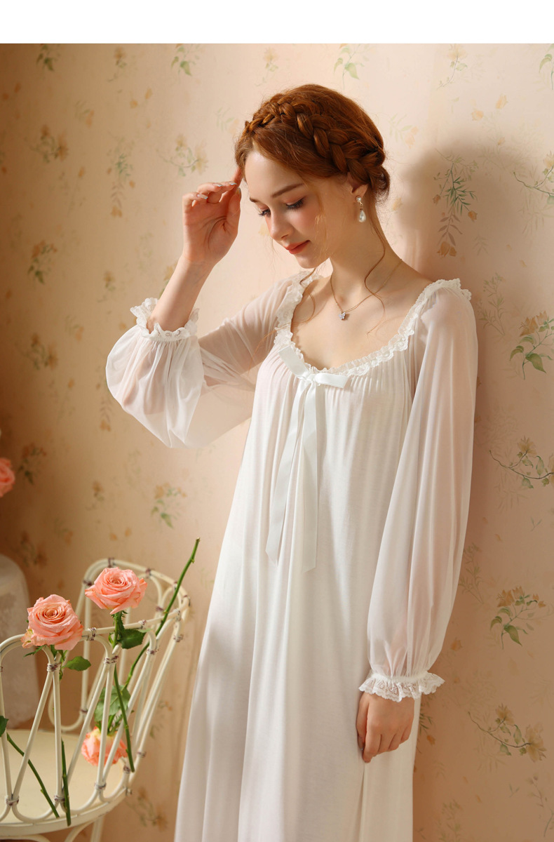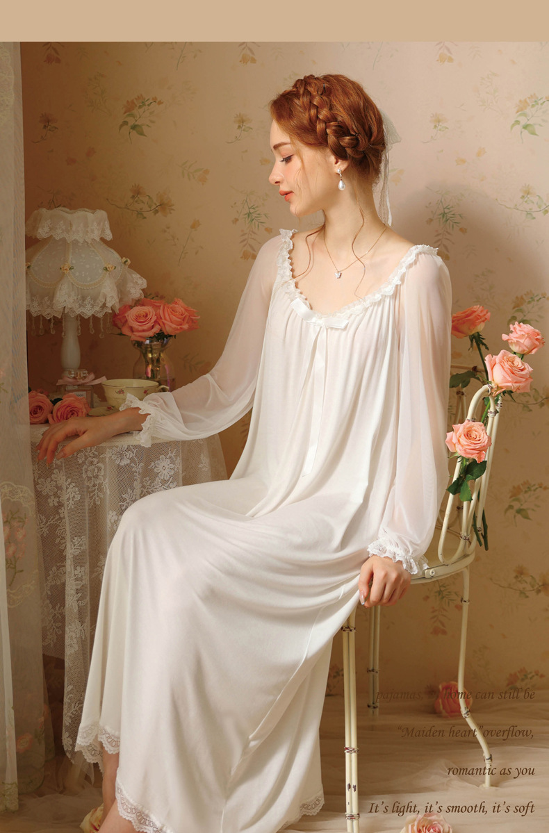 (总)洛兰沙家居馆 2026新款睡衣宫廷风少女甜美公主法式长裙春秋蕾丝跨境家居服长款睡裙,白色