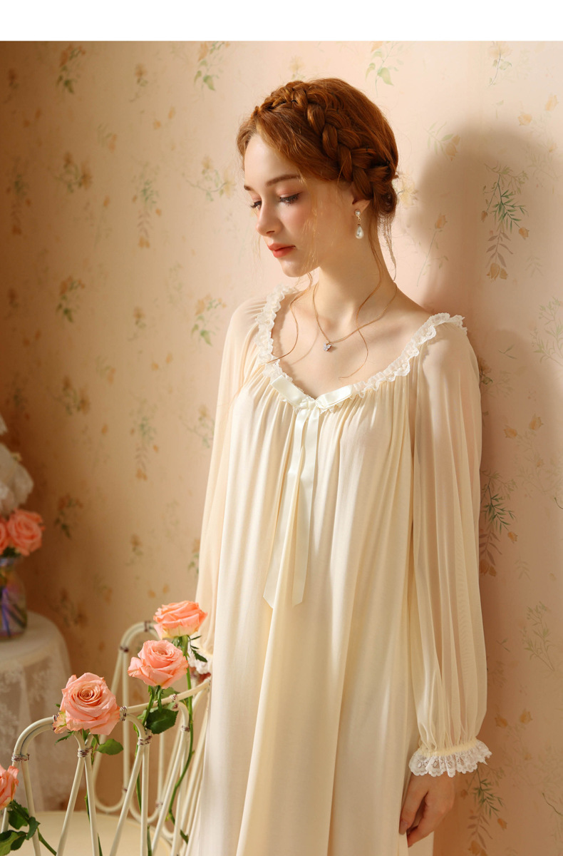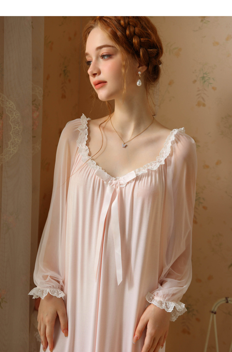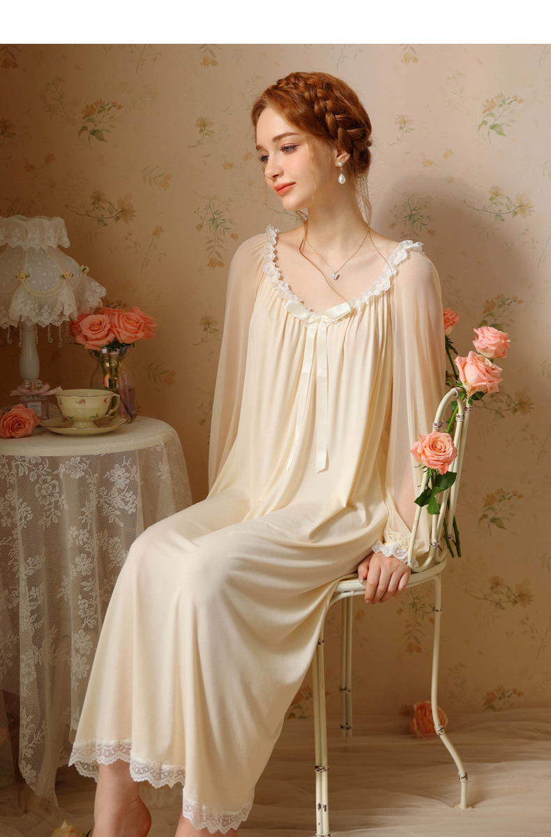 商品名称:(总)洛兰沙家居馆 2026新款宫廷公主风睡裙春秋长袖法式蕾丝家居高级感性感睡衣甜美少女长裙