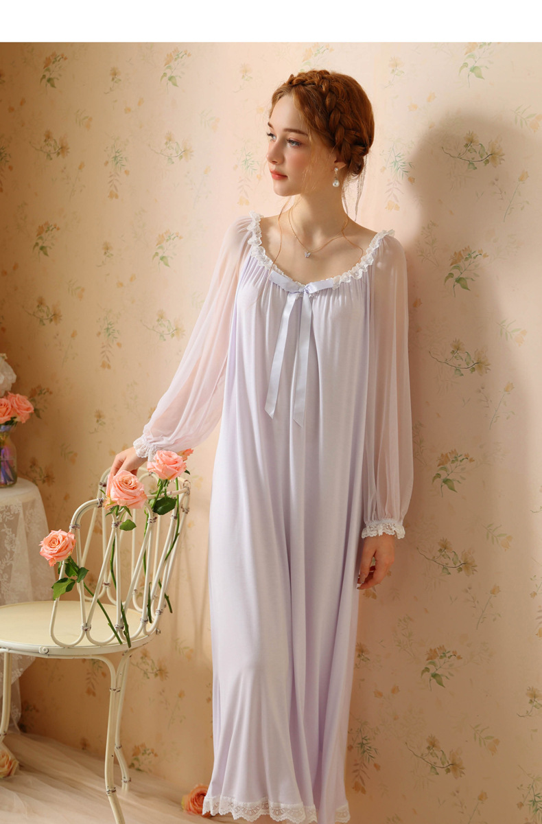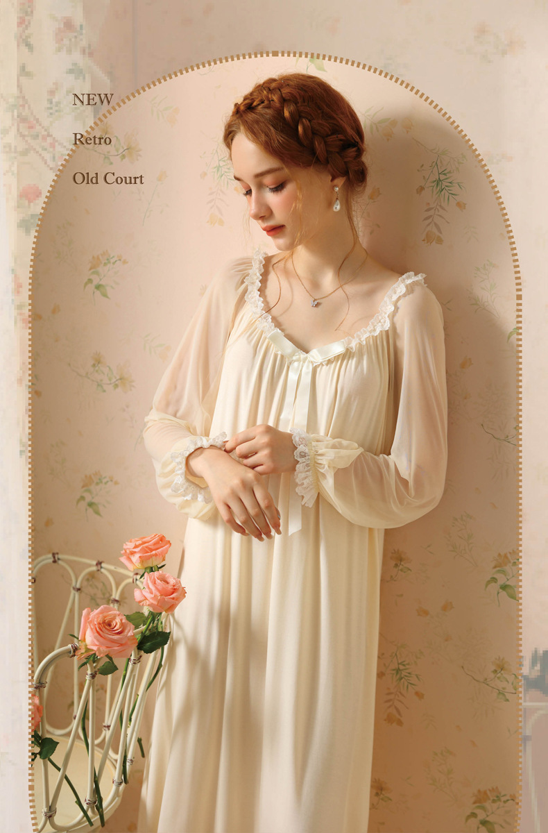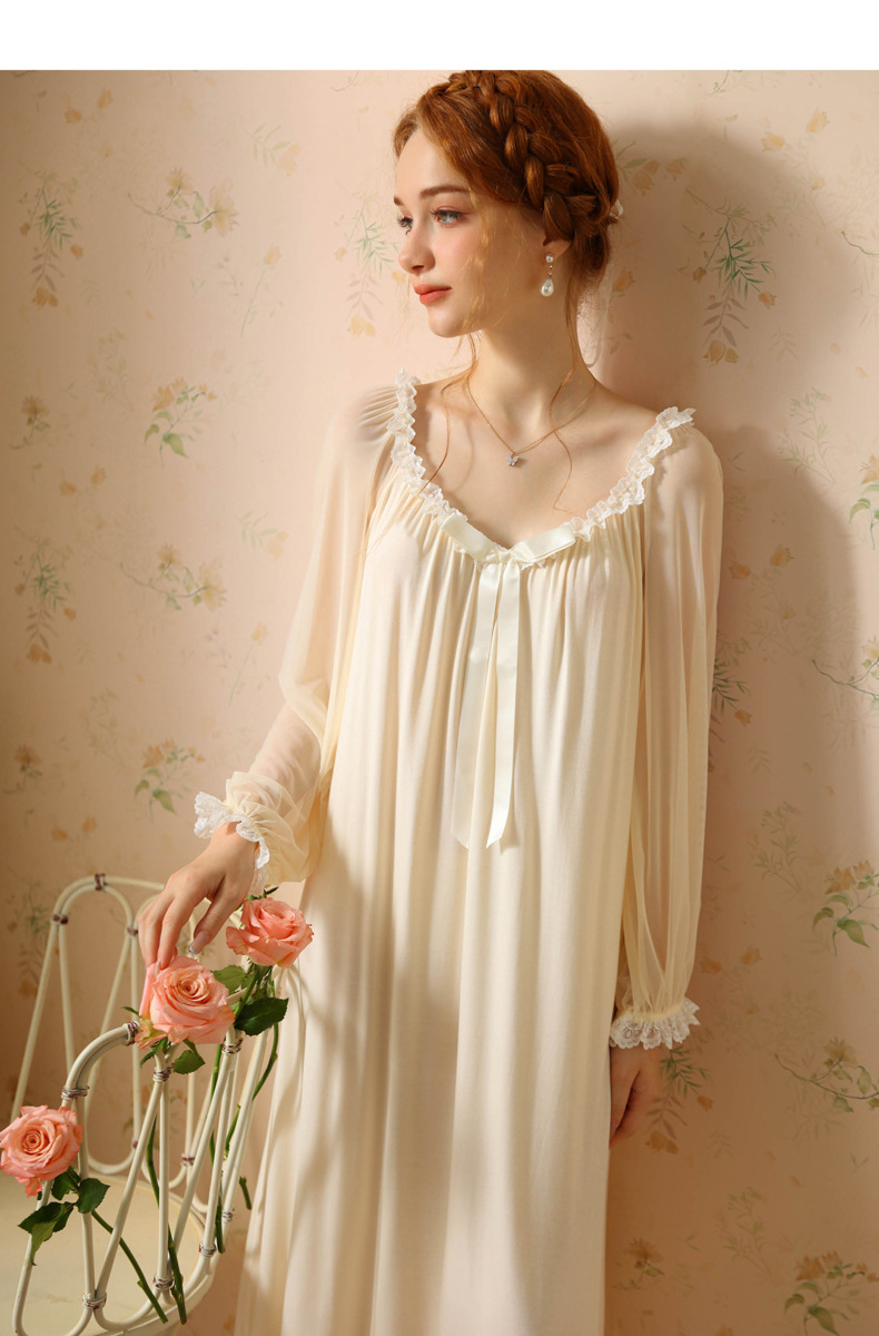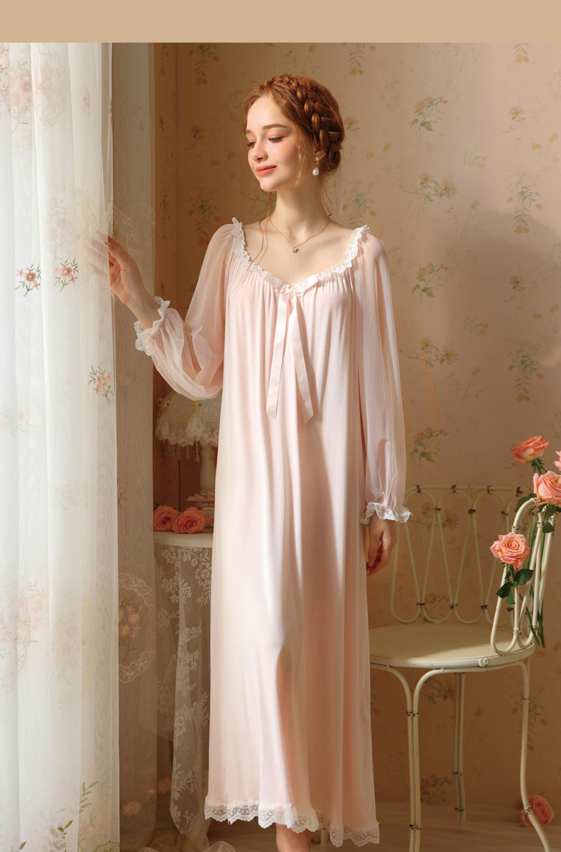 商品名称:(总)洛兰沙家居馆 2026新款宫廷公主风睡裙春秋长袖法式蕾丝家居高级感性感睡衣甜美少女长裙