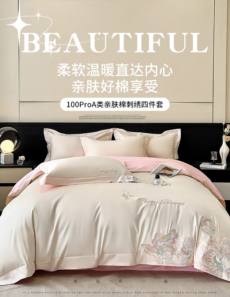 当前位置: 91家纺网 > 商品网购 > 床品套件 > 四件套 > 其它四件套 > 卡初家居(原微来) 2026新款A类母婴级亲肤棉绣花四件套-锦上添花 锦上添花-白+粉