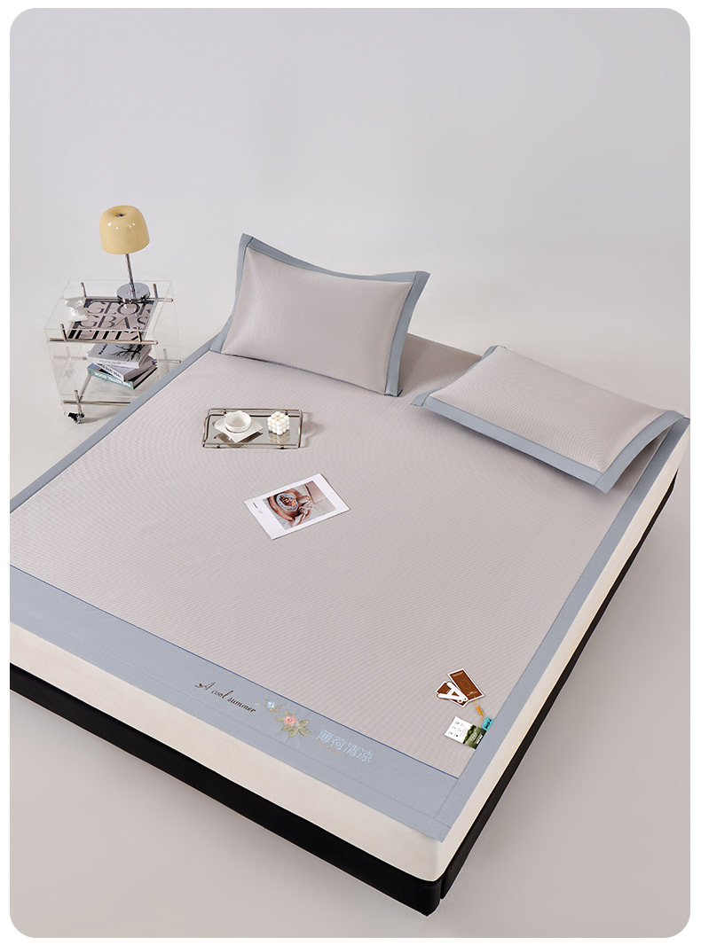 (总)2023新款超精密冰丝席-小斜纹系列-床笠款藤席凉席竹席,粉色,蓝色,绿色,银灰