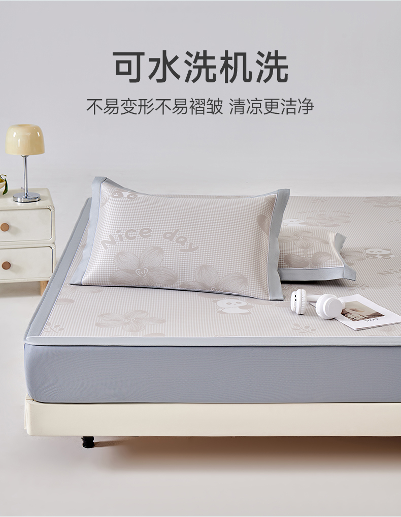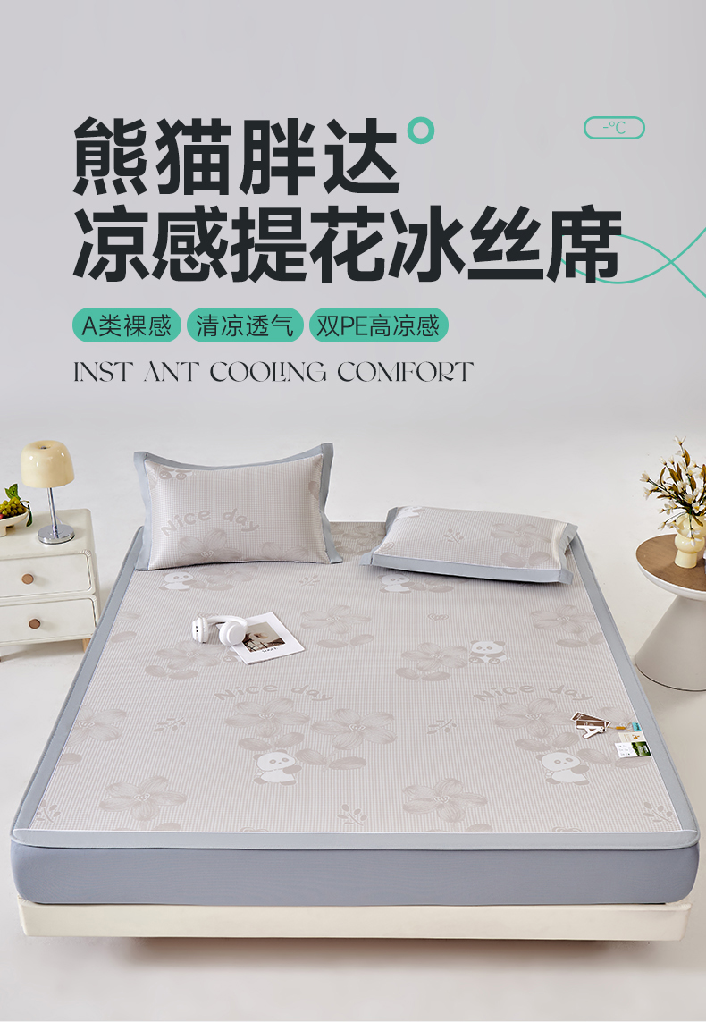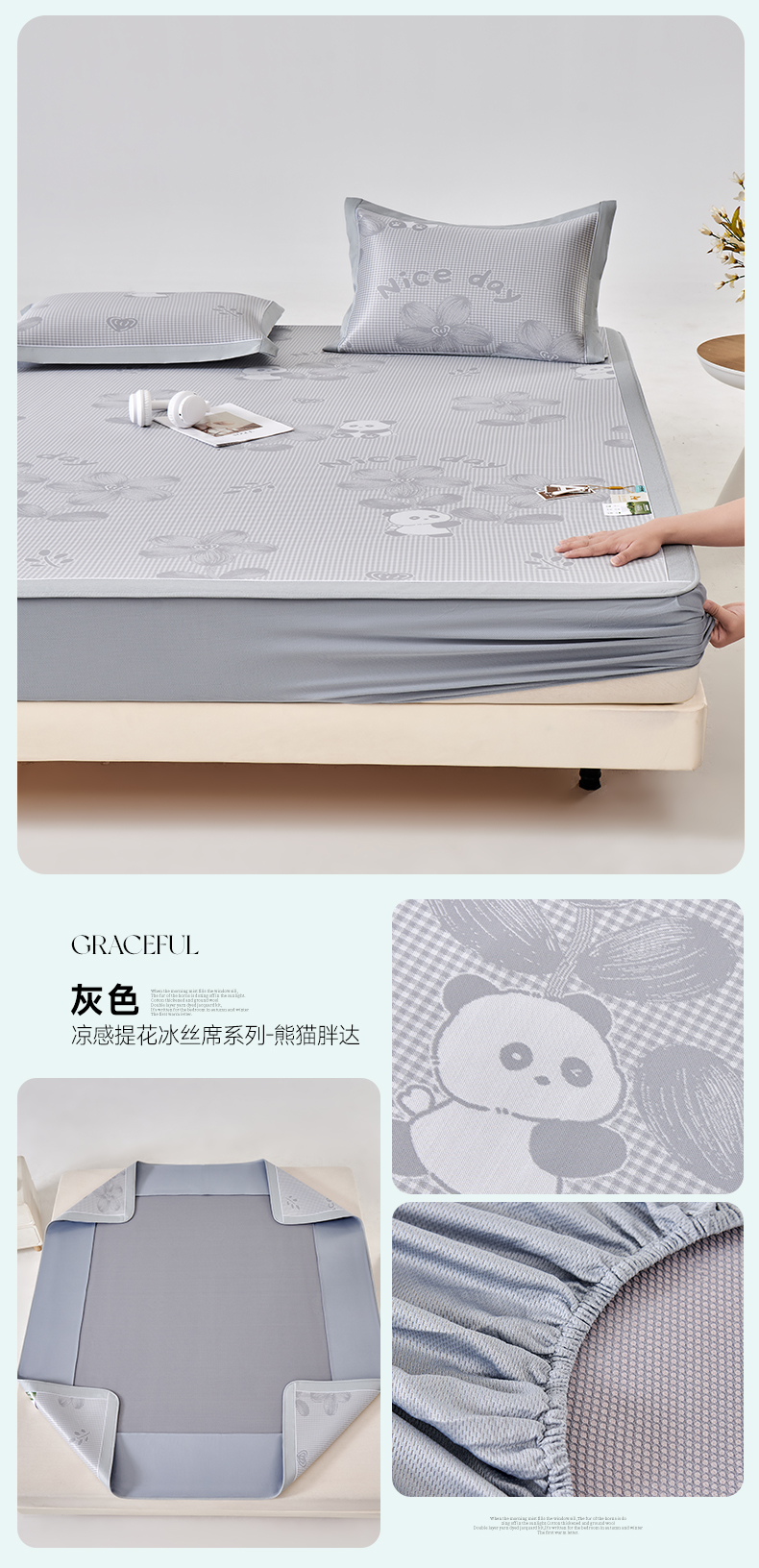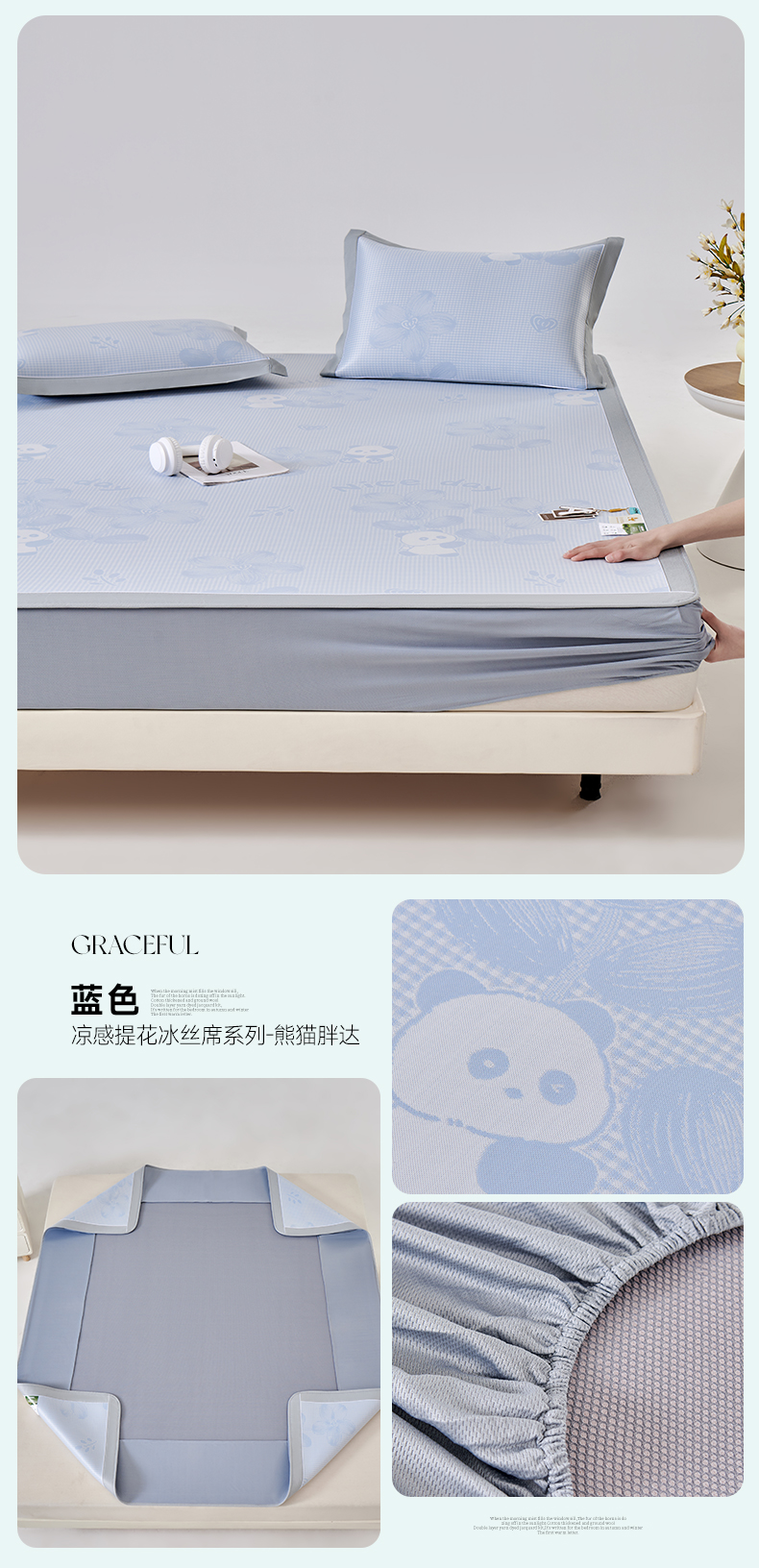 (总)小牛席业 2026新款胖达凉感提花冰丝席席子凉席-床笠款,粉色,灰色,蓝色,香槟