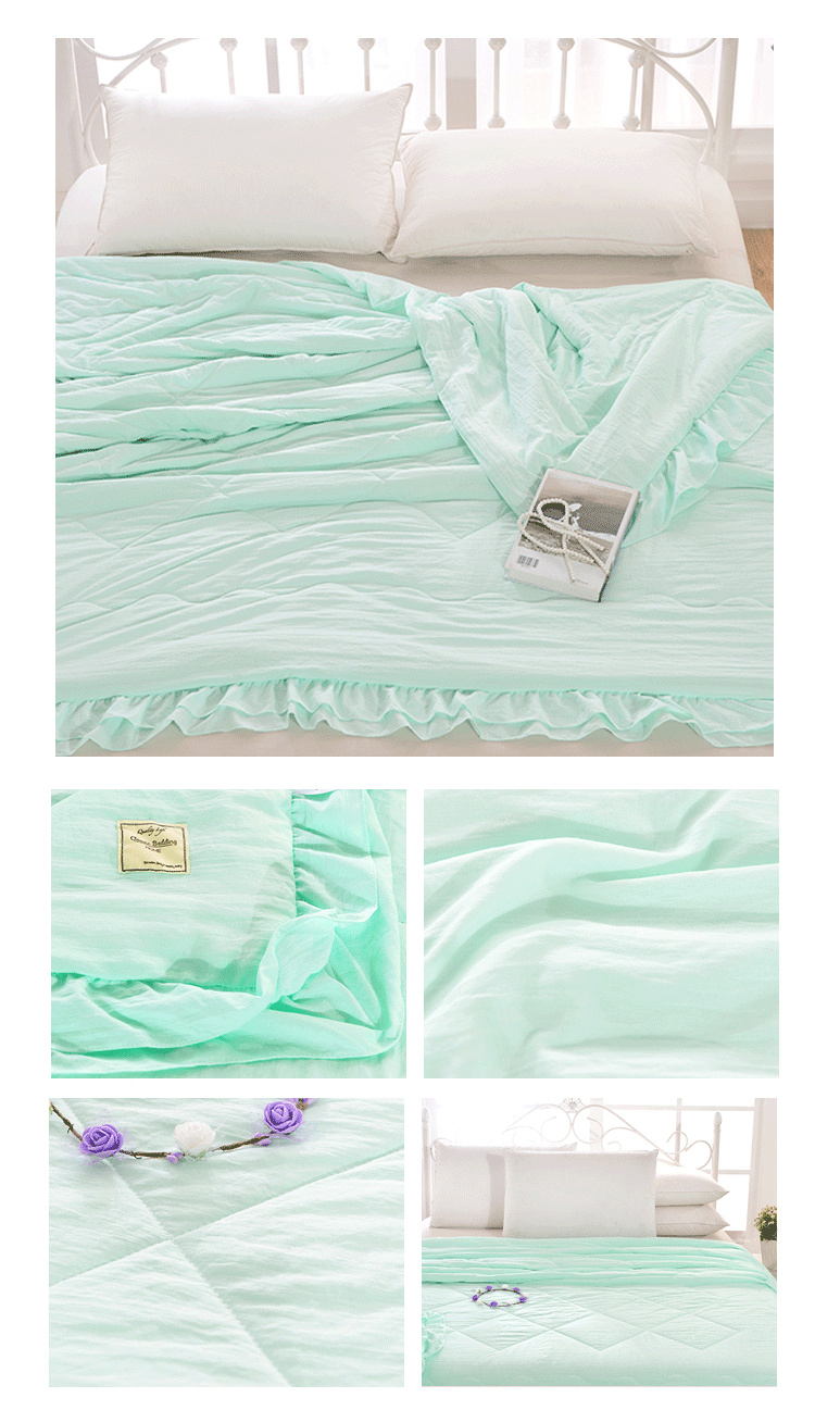 畅畅家纺 双边荷叶边简约时尚款水洗棉夏被 水绿