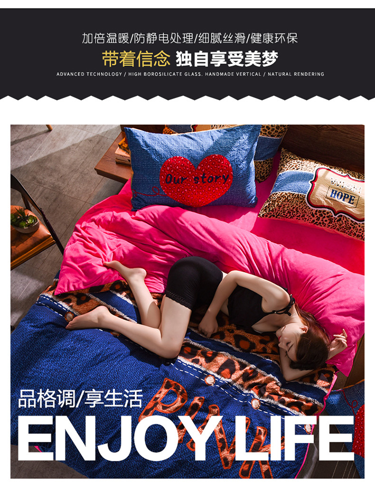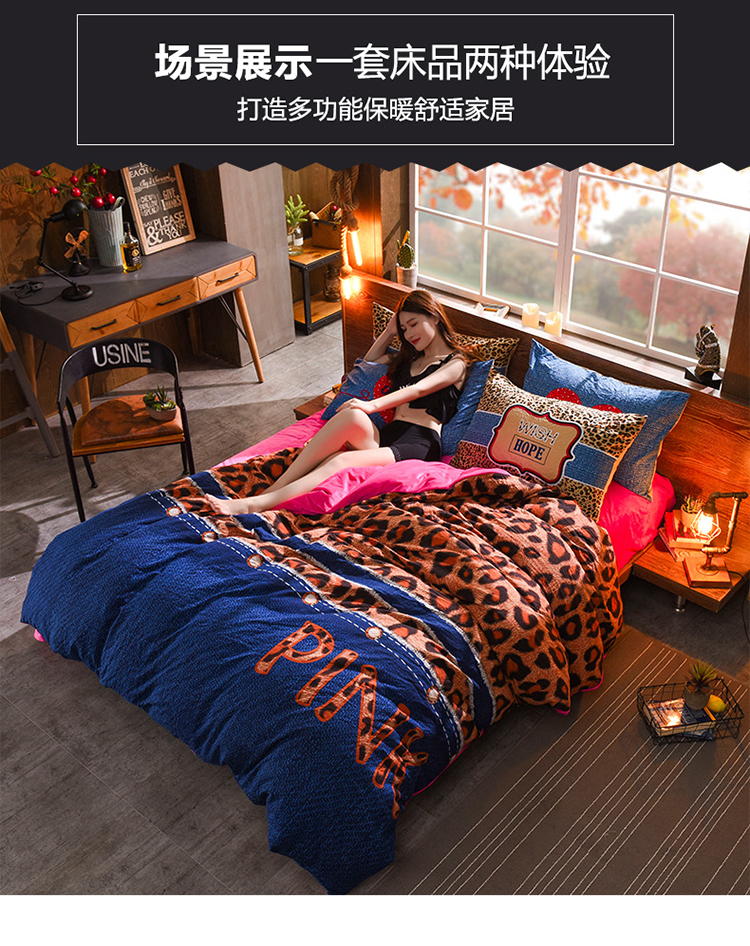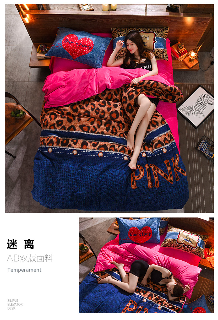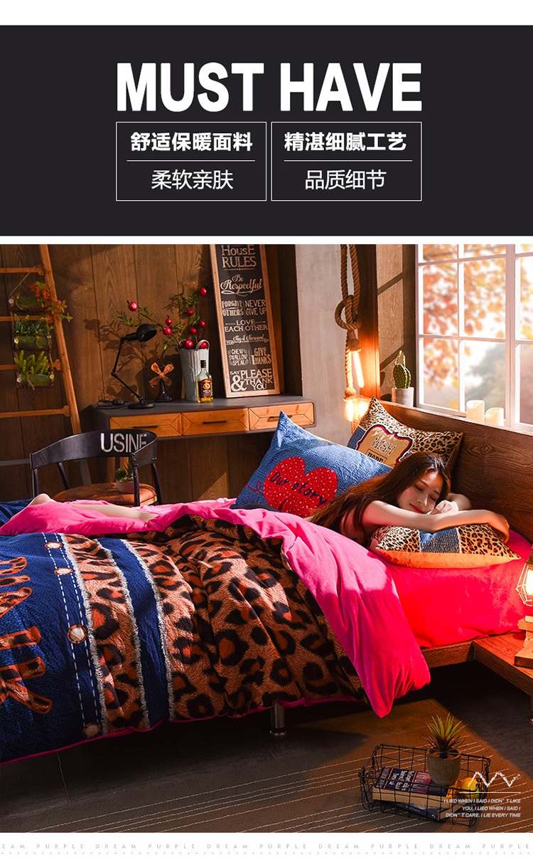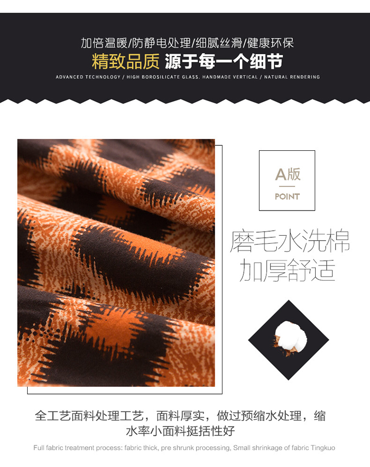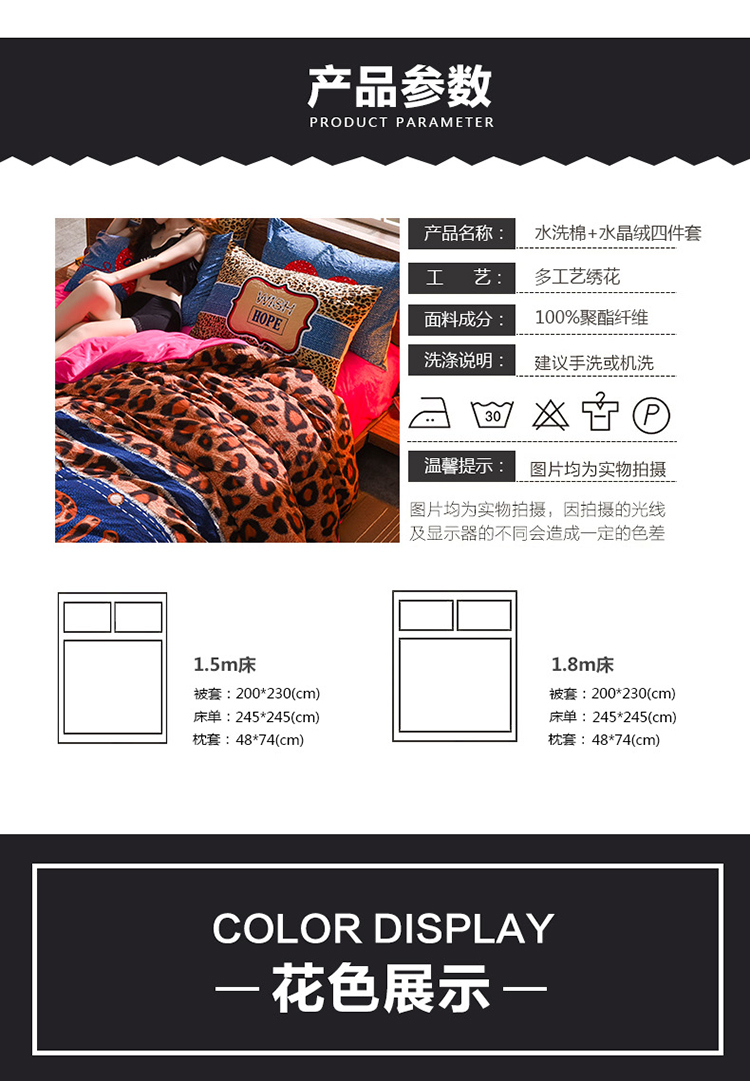 商品名称:芃成家纺 磨毛水洗棉平网印花拼水晶绒四件套迷离