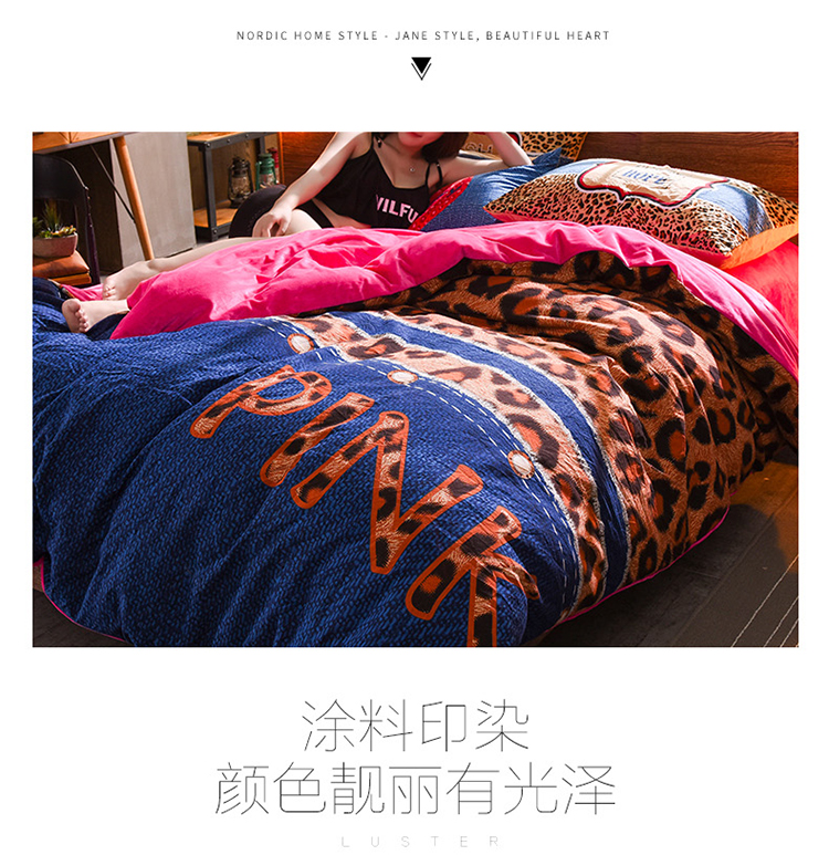 芃成家纺 磨毛水洗棉平网印花拼水晶绒四件套迷离