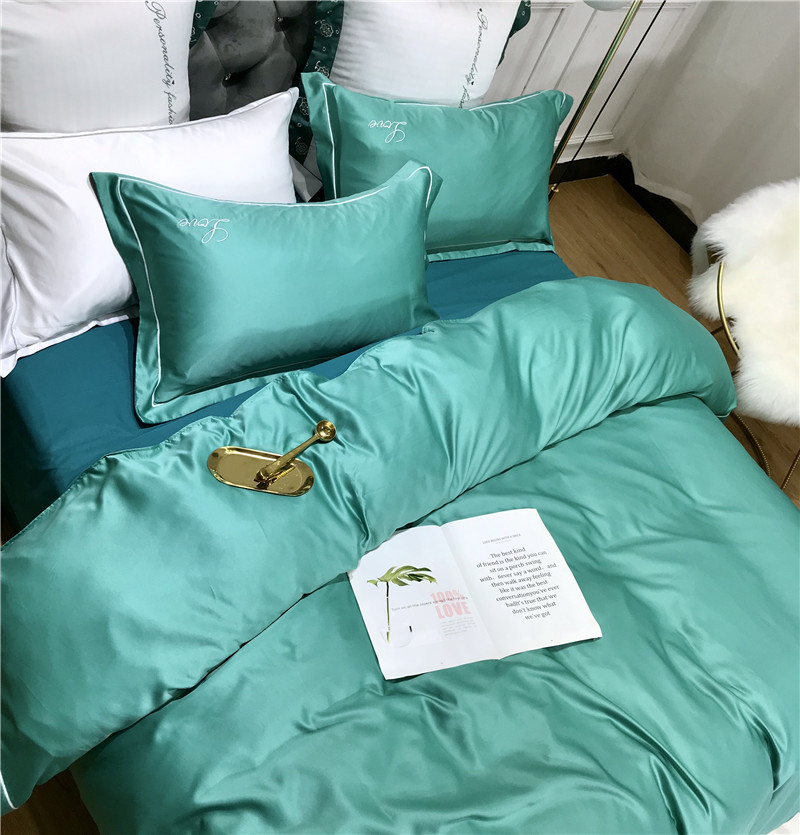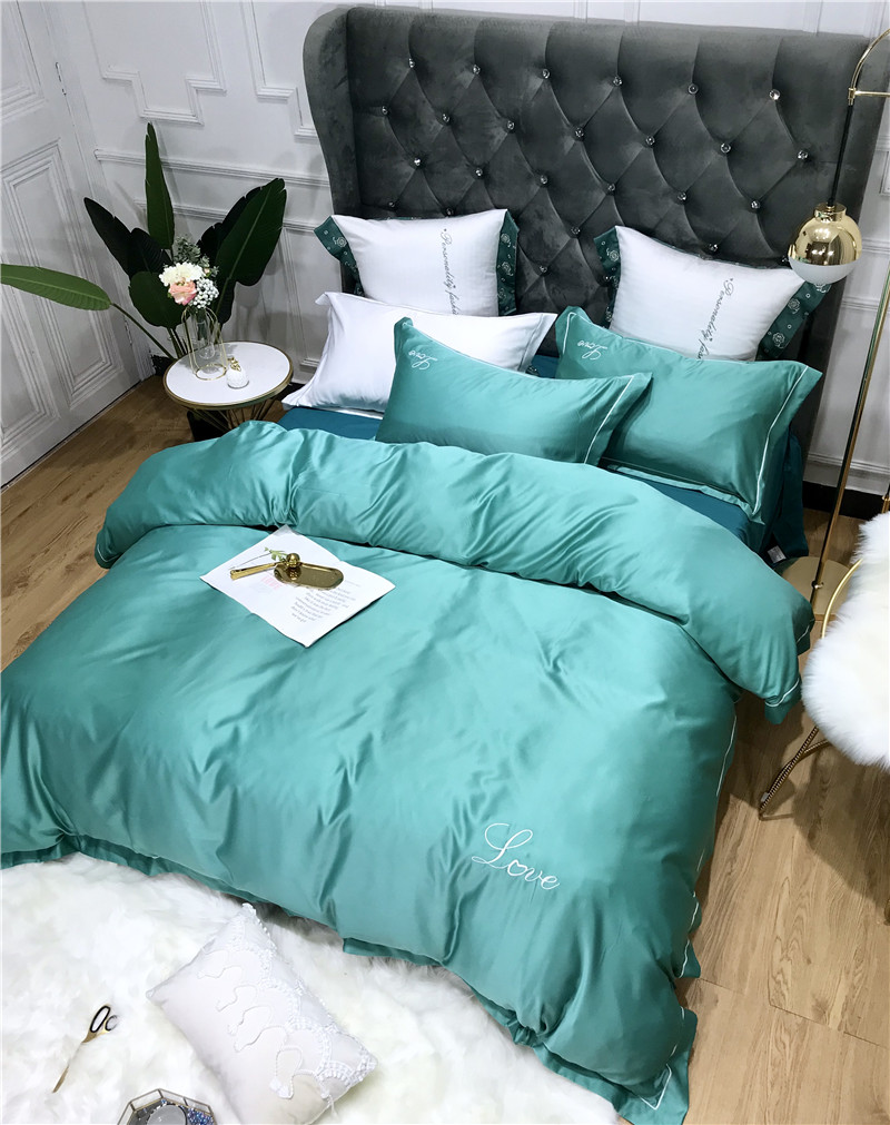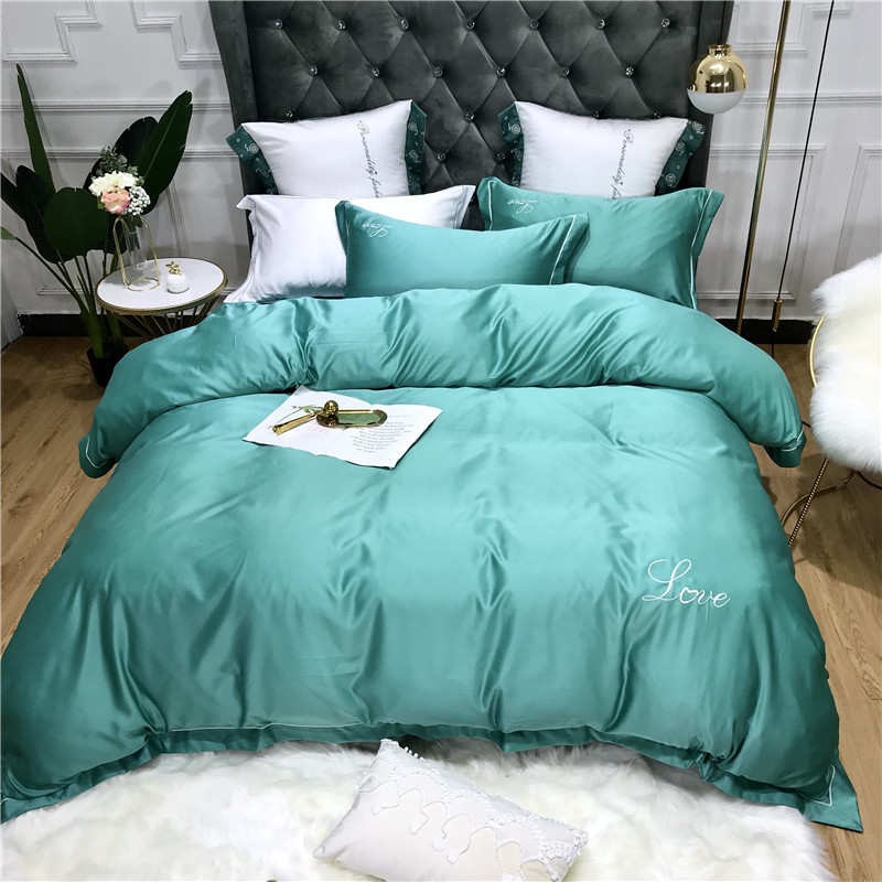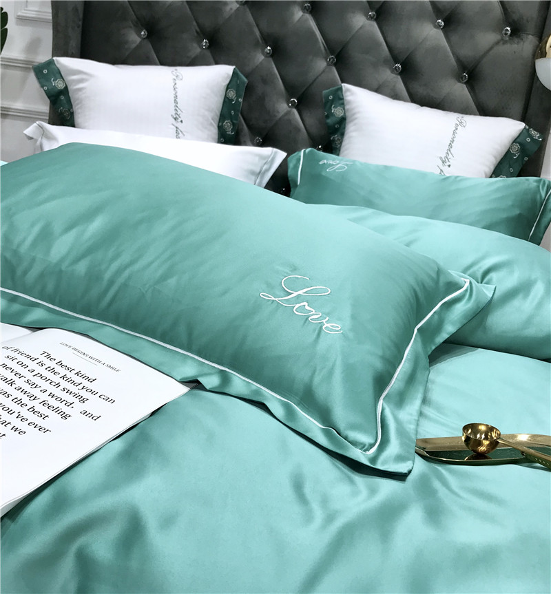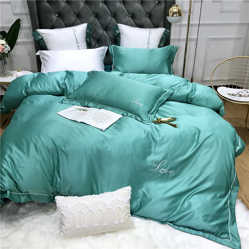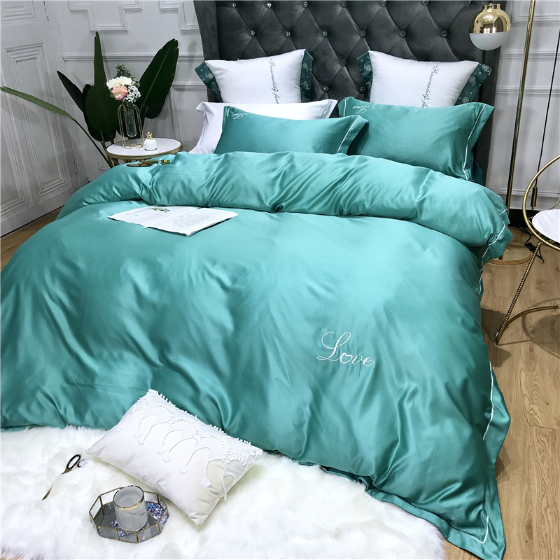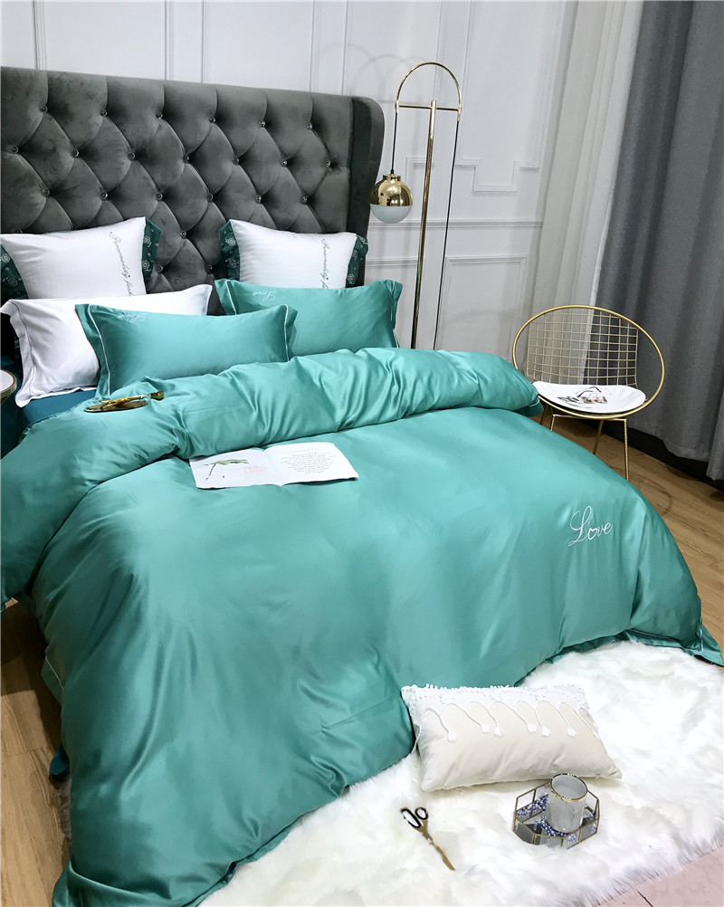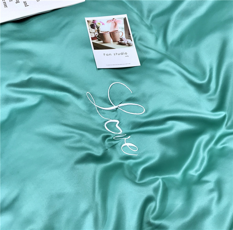 祺瑞佳 2022水洗真丝全棉绣花四件套-LOVE 雨墨