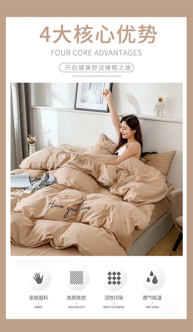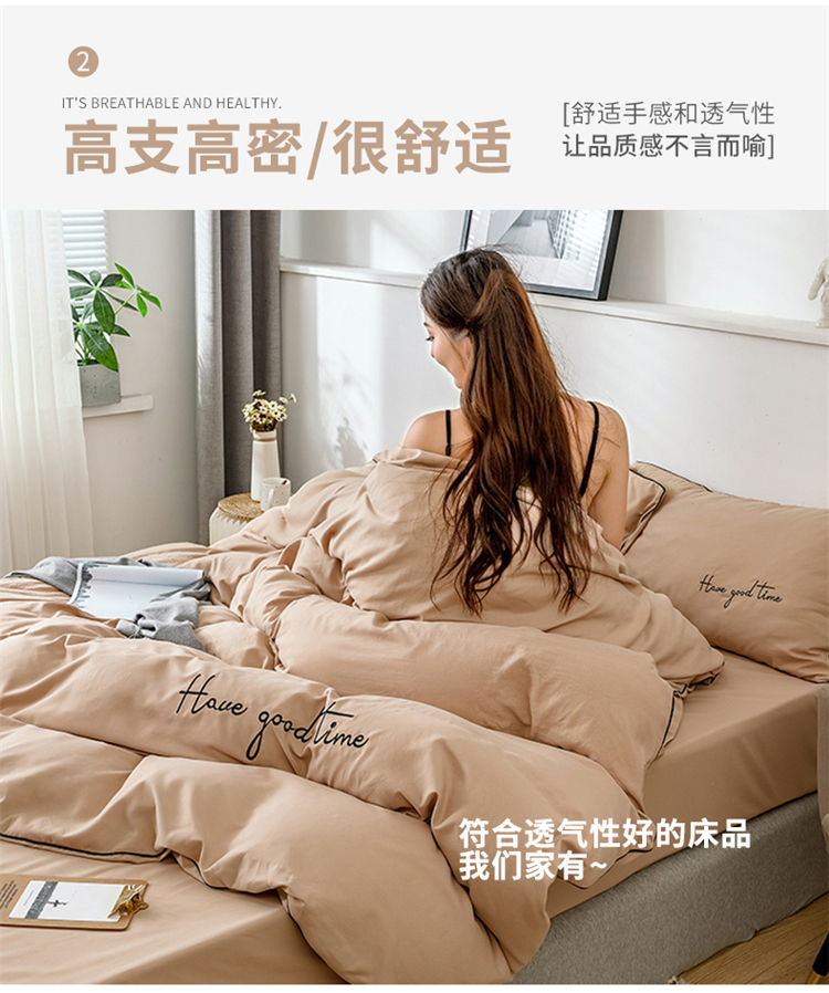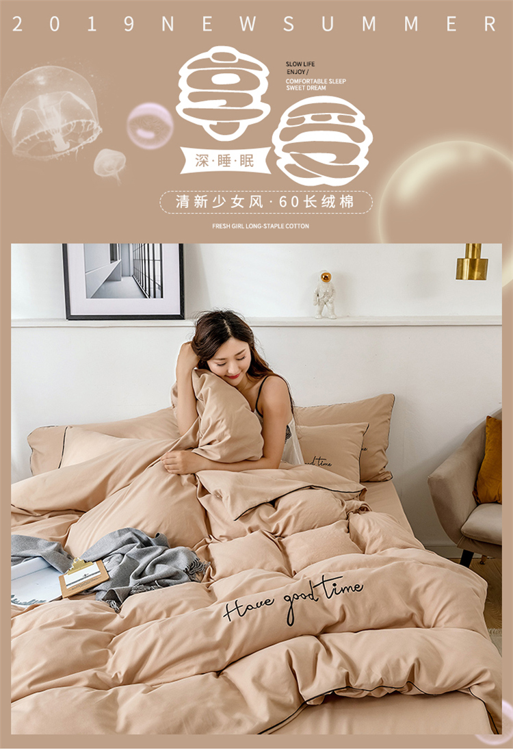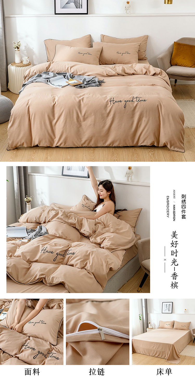 意尚风情2019新款60长绒棉绣花工艺款四件套美好时光-香槟