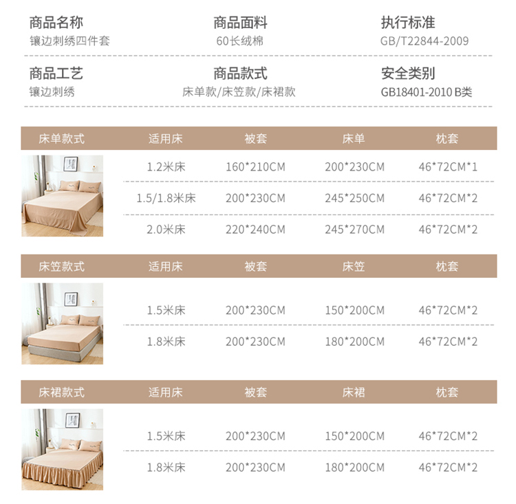 商品名称: 意尚风情2019新款60长绒棉绣花工艺款四件套美好时光-香槟