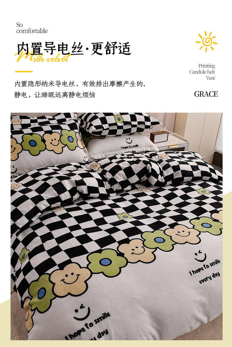(总)同田 2023新款牛奶金貂绒四件套印花保暖法莱水晶绒