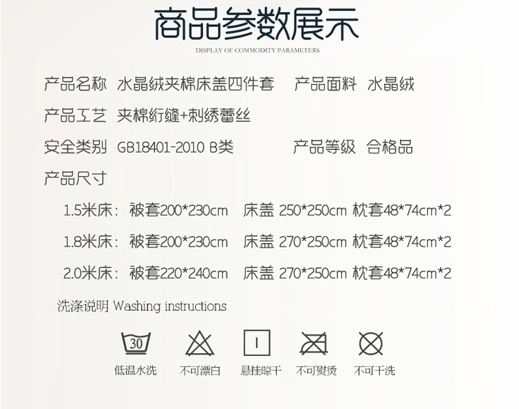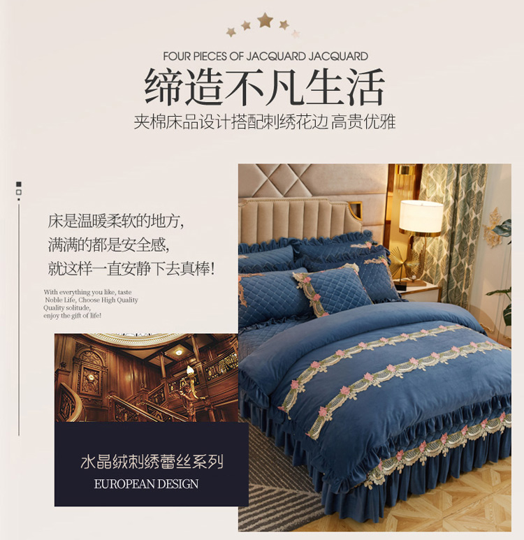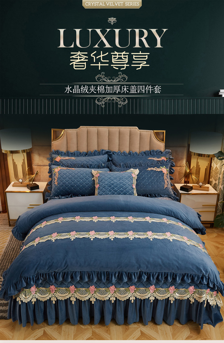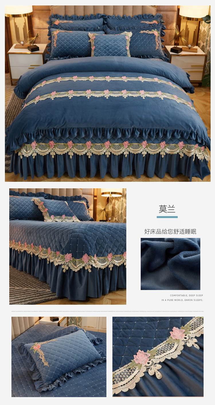 商品名称:菊上家纺 2021雅典娜水晶绒加厚夹棉床盖四件套 莫兰