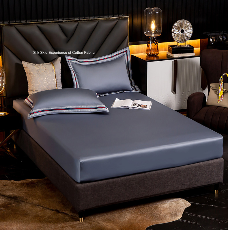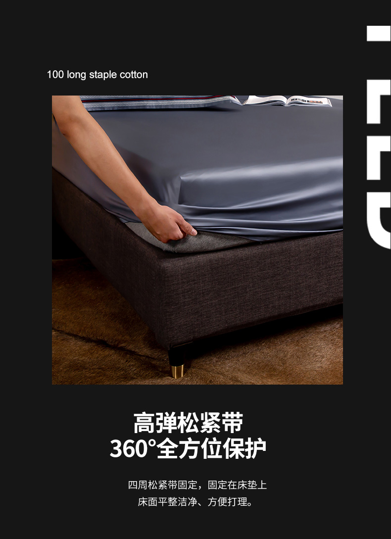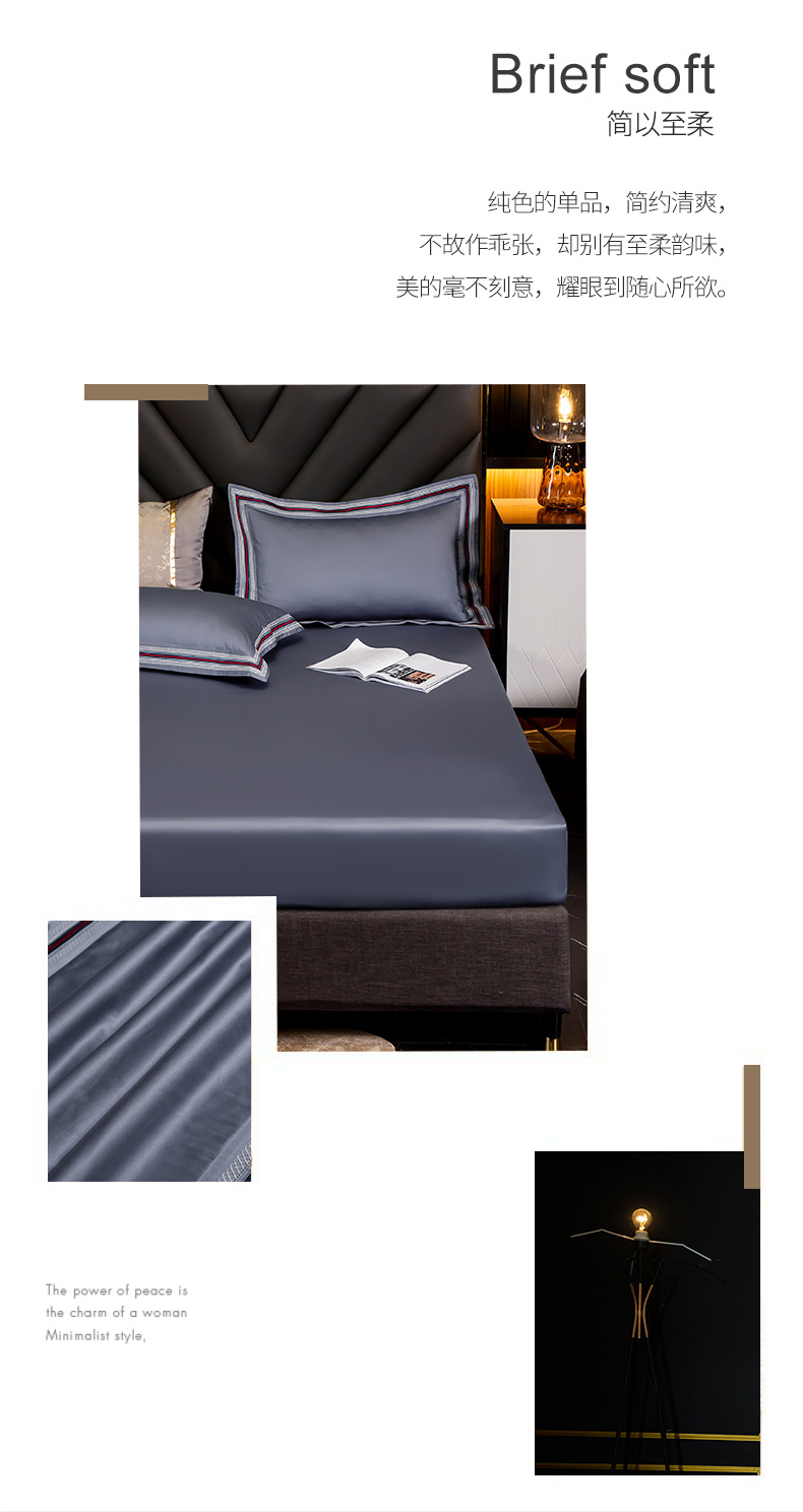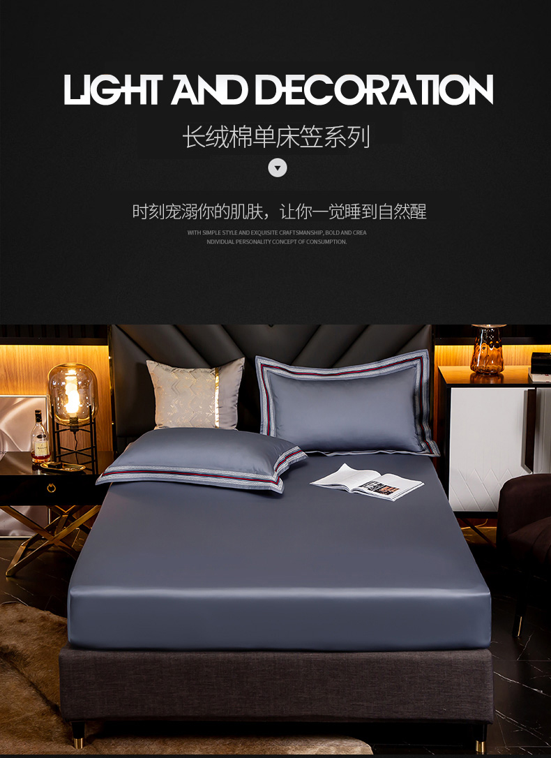 凯磊家纺 2019新款高支高密.简约风长绒棉单床笠 爱丽丝-灰蓝