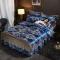 美织缘家纺2020床裙款莫代尔蕾丝花边贡缎四件套天空之城-梦幻蓝