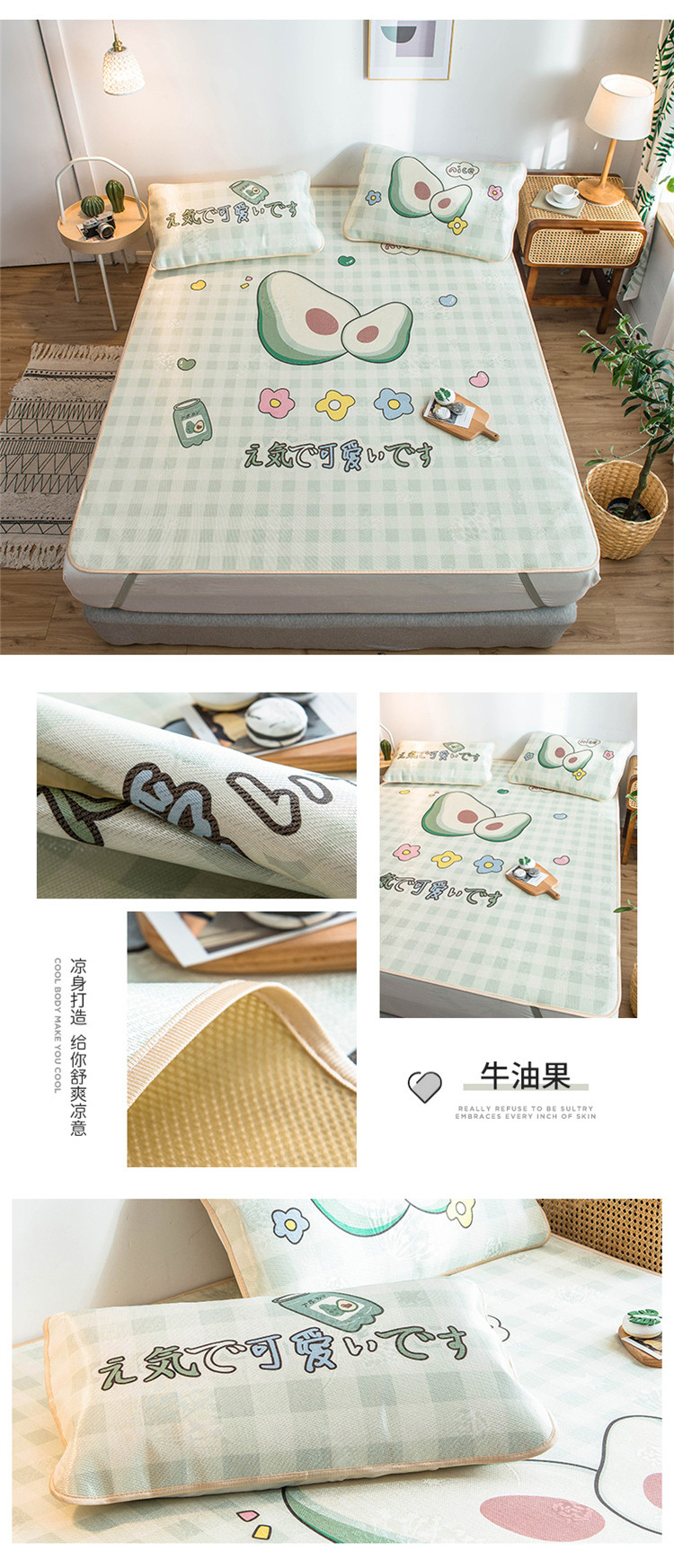 商品名称:懒猫 2020新款大版冰丝凉席 牛油果