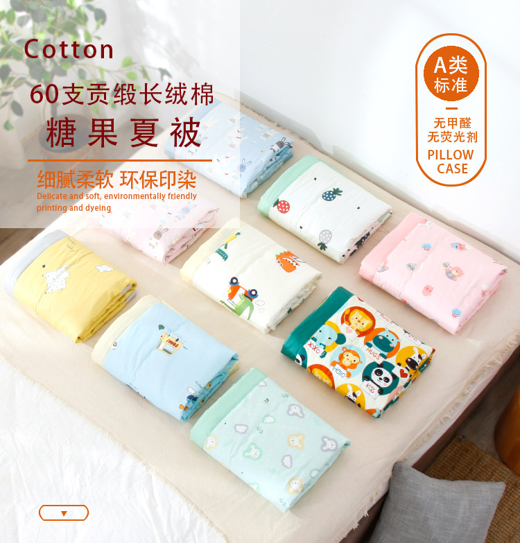 商品名称:A+艾佳 2020新款60贡缎糖果系类儿童夏被 群英会