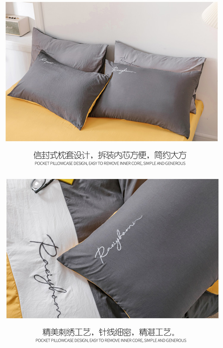 (总)索飞特 2021春夏新款高密度水洗棉宽边刺绣四件套,粉白色,姜黄,奢绿,深灰,松石绿,雾蓝,象牙白,樱花粉
