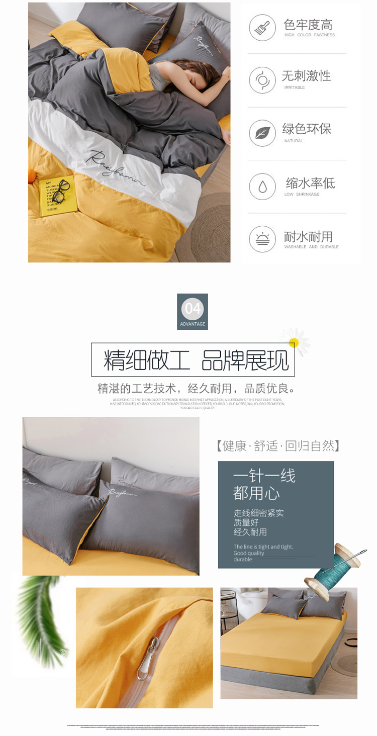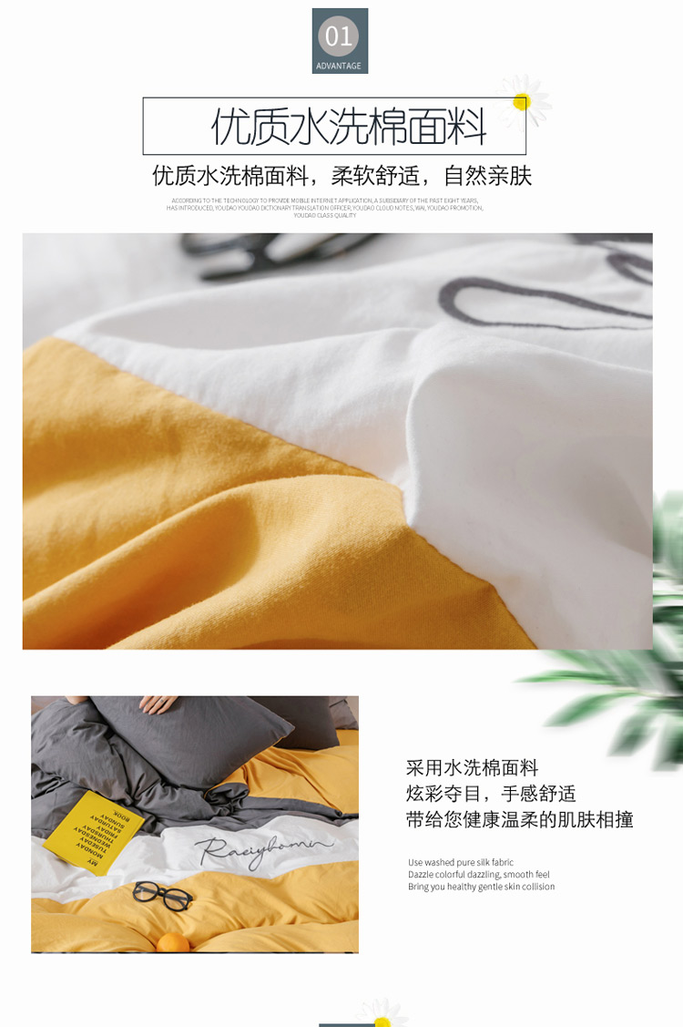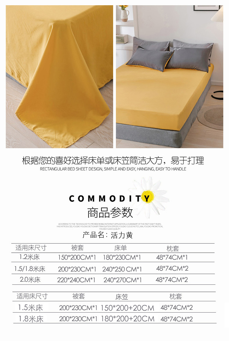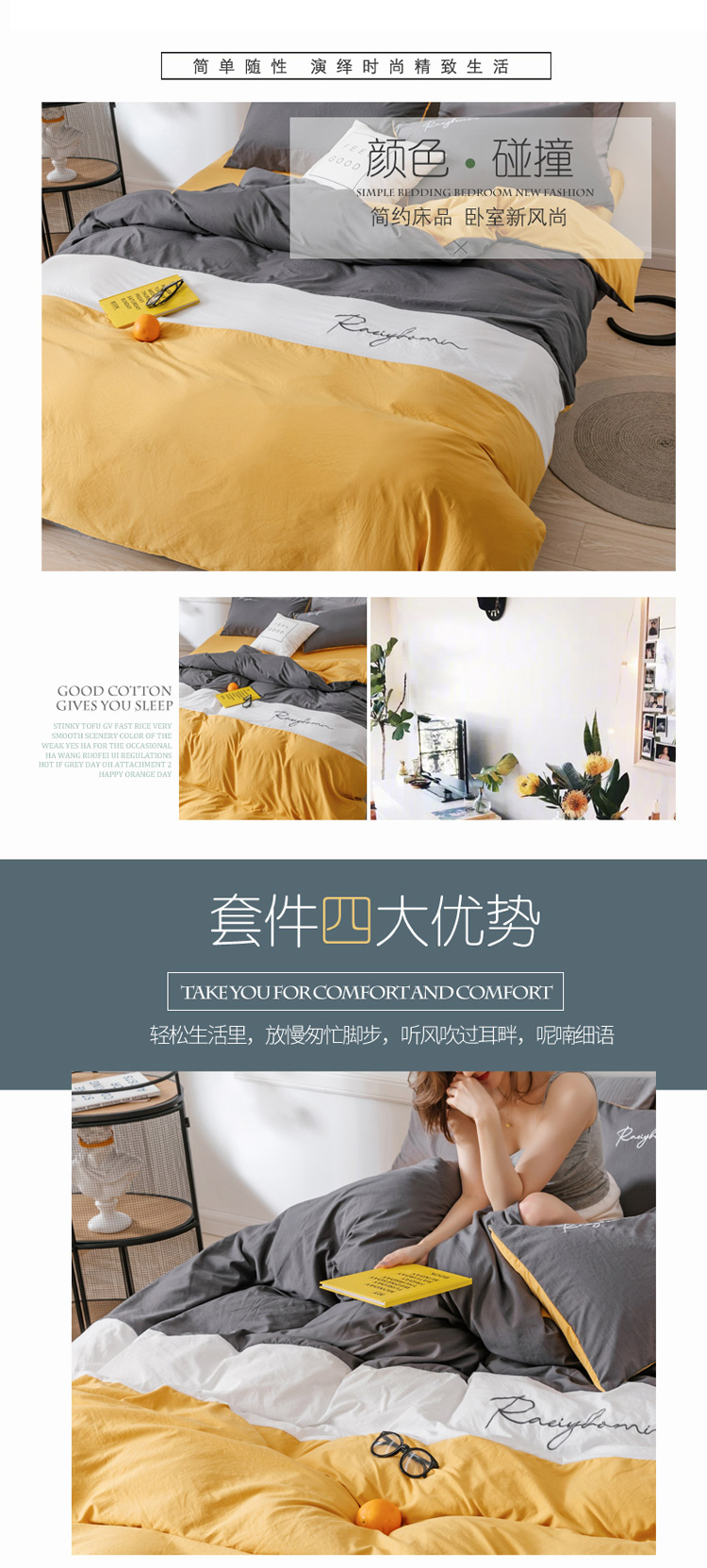 商品名称:索飞特 2021春夏新款水洗棉四件套三色系列 活力黄