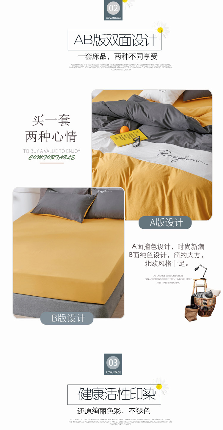 索飞特 2021春夏新款水洗棉四件套三色系列 活力黄