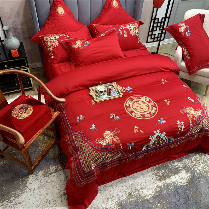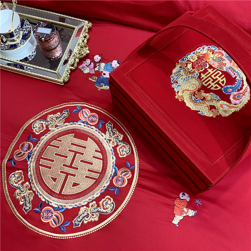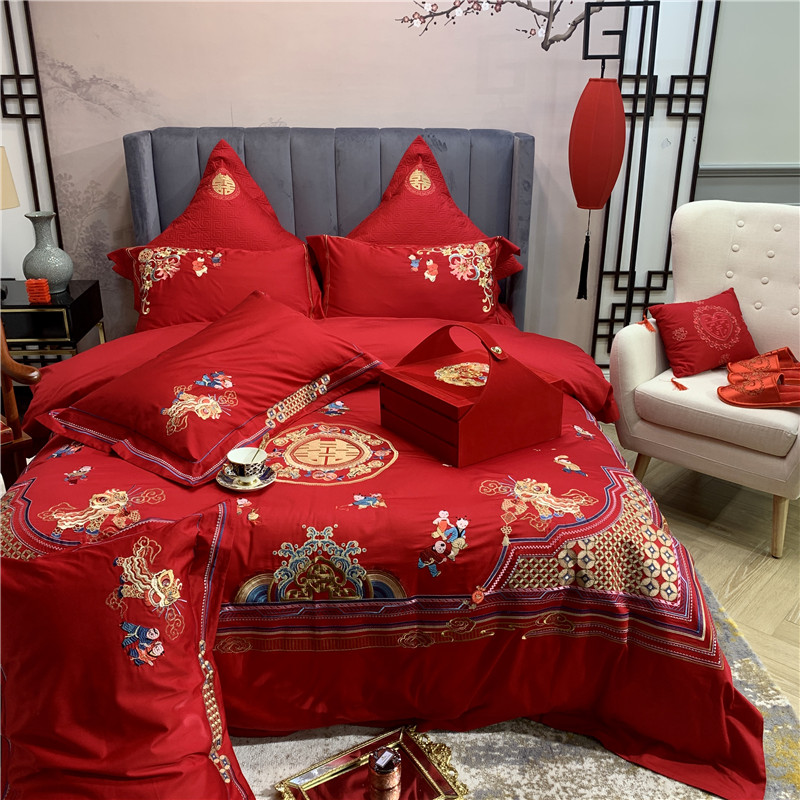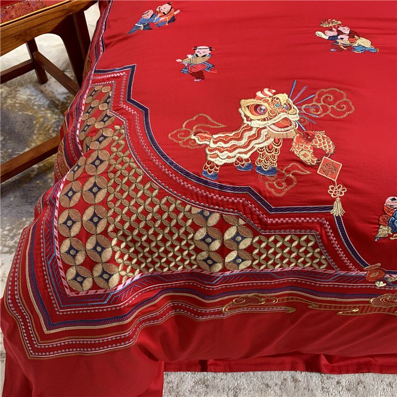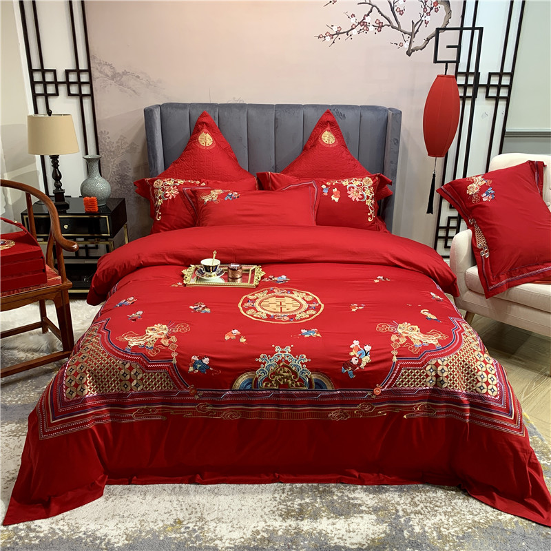 橘滋 2021新款高定婚嫁AB版全棉提花四件套 麒麟送子