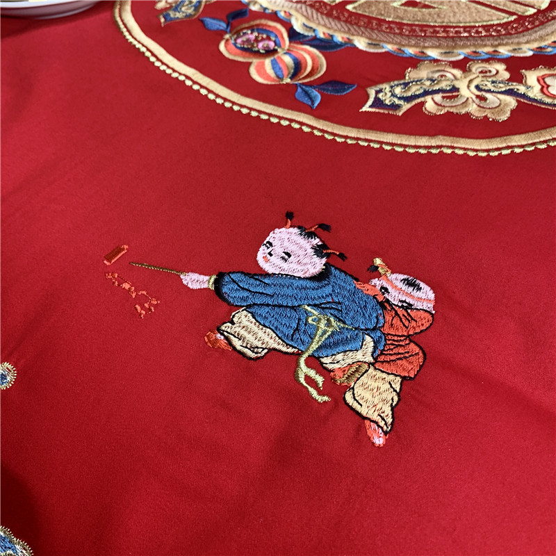商品名称:橘滋 2021新款高定婚嫁AB版全棉提花四件套 麒麟送子