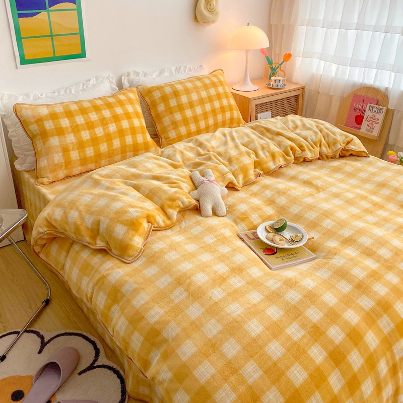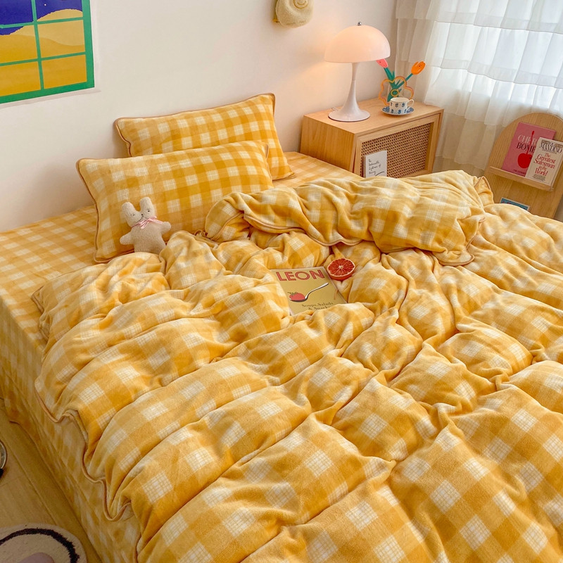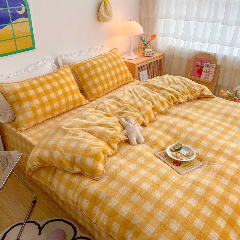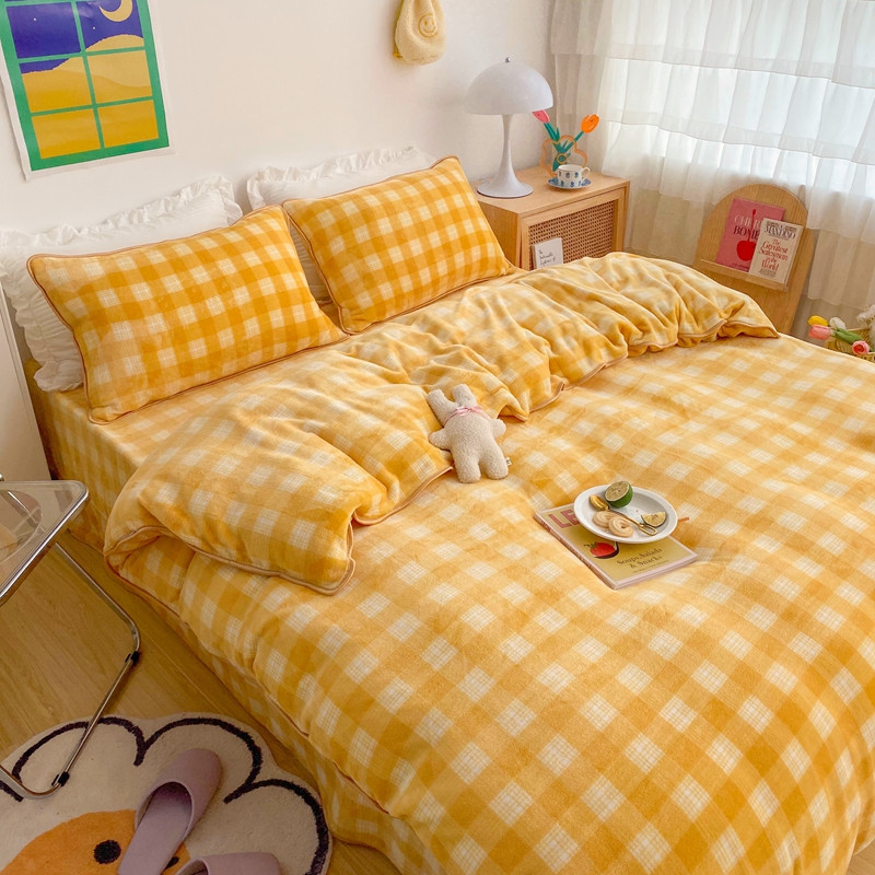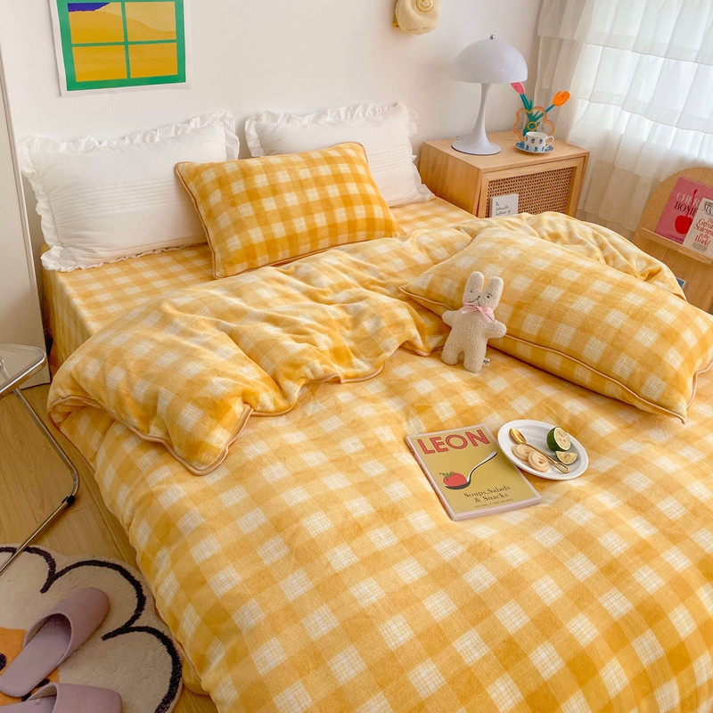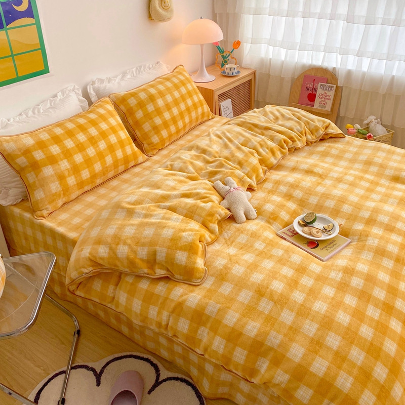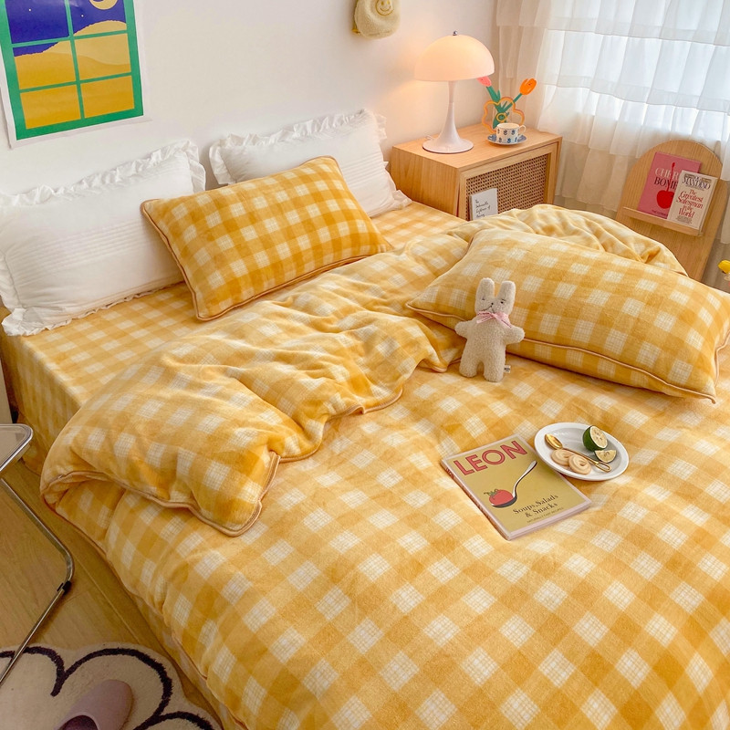 顾里 2020新款韩国ins高端保暖牛奶绒套件 柠檬黄