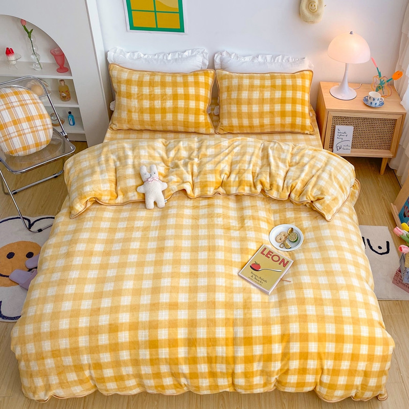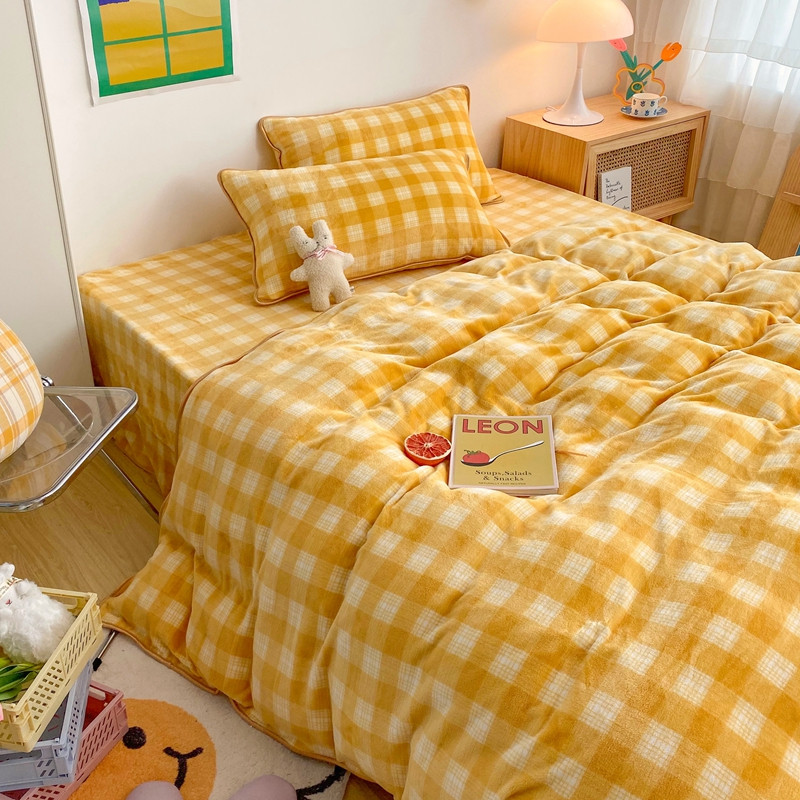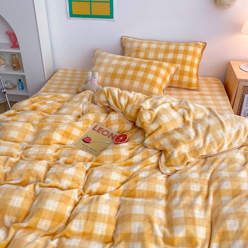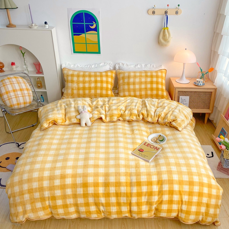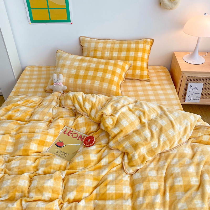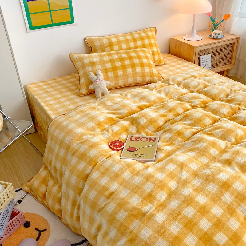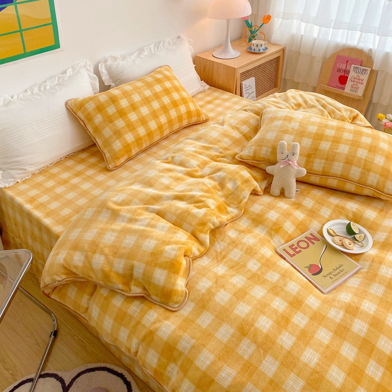 顾里 2020新款韩国ins高端保暖牛奶绒套件 柠檬黄