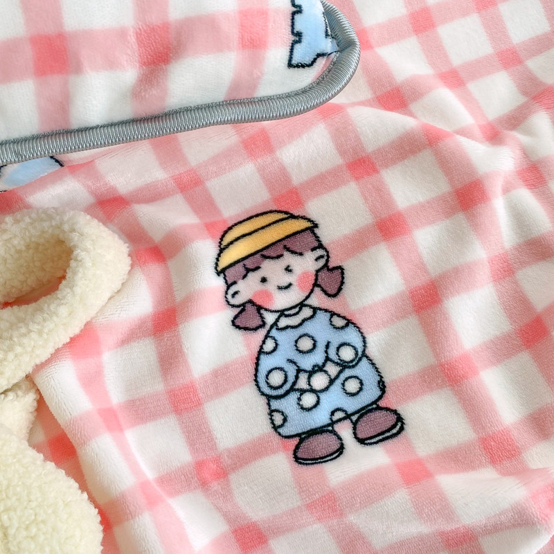 (总)顾里家纺 2024新款ins奶萌格子狗狗毛巾绣牛奶绒四件套,粉格小狗,黄格小狗,咖格小狗,蓝格小狗,绿格小狗